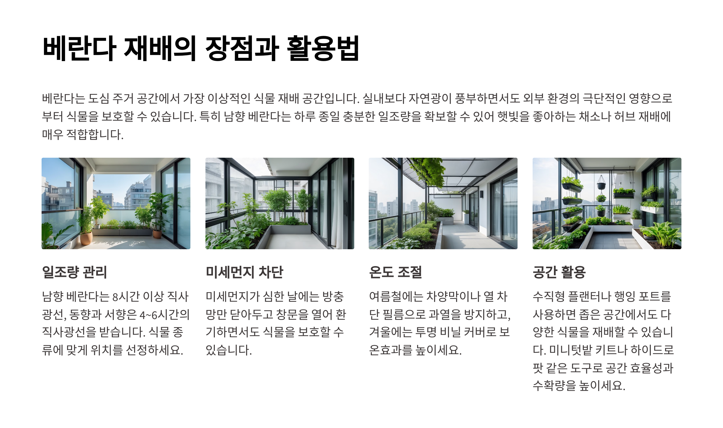 또한 베란다는 공간이 한정되어 있어 관리하기 쉬워요. 작은 화분 하나로 시작해서 두세 개로 늘려가는 것도 좋고, 수직 선반을 활용하면 여러 식물을 효율적으로 배치할 수도 있어요. 수확 후에는 가족들과 함께 따먹는 재미도 있어요!