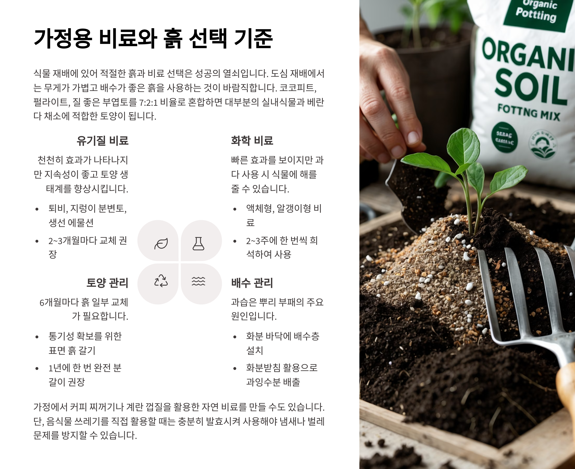 비료는 질소(N), 인(P), 칼륨(K)의 균형이 맞는 복합비료를 사용하는 것이 기본이에요. 하지만 과한 비료는 오히려 뿌리를 상하게 할 수 있으니, 생장기(봄~초여름)에는 2주 간격으로 소량씩 주는 것이 좋아요.