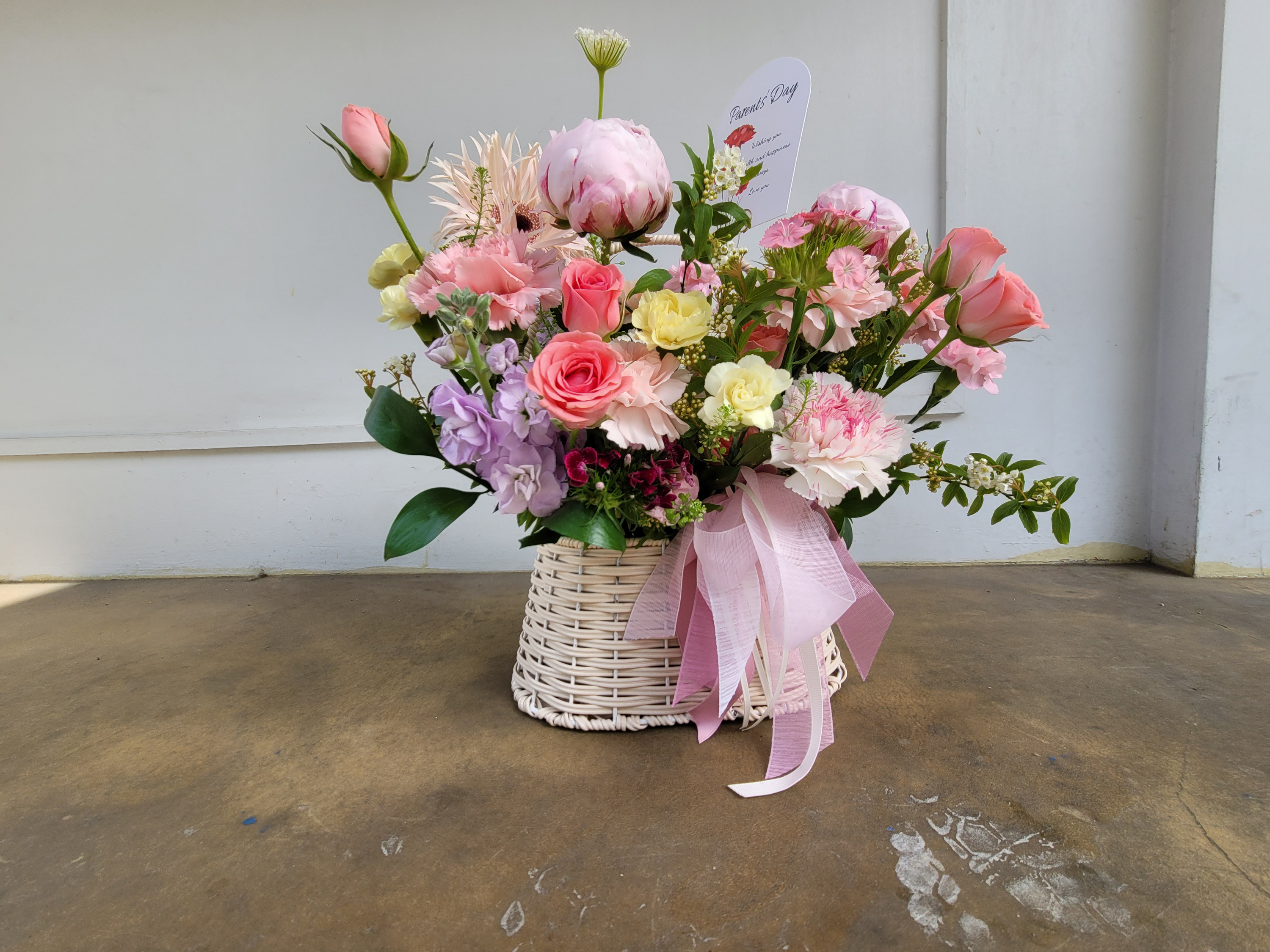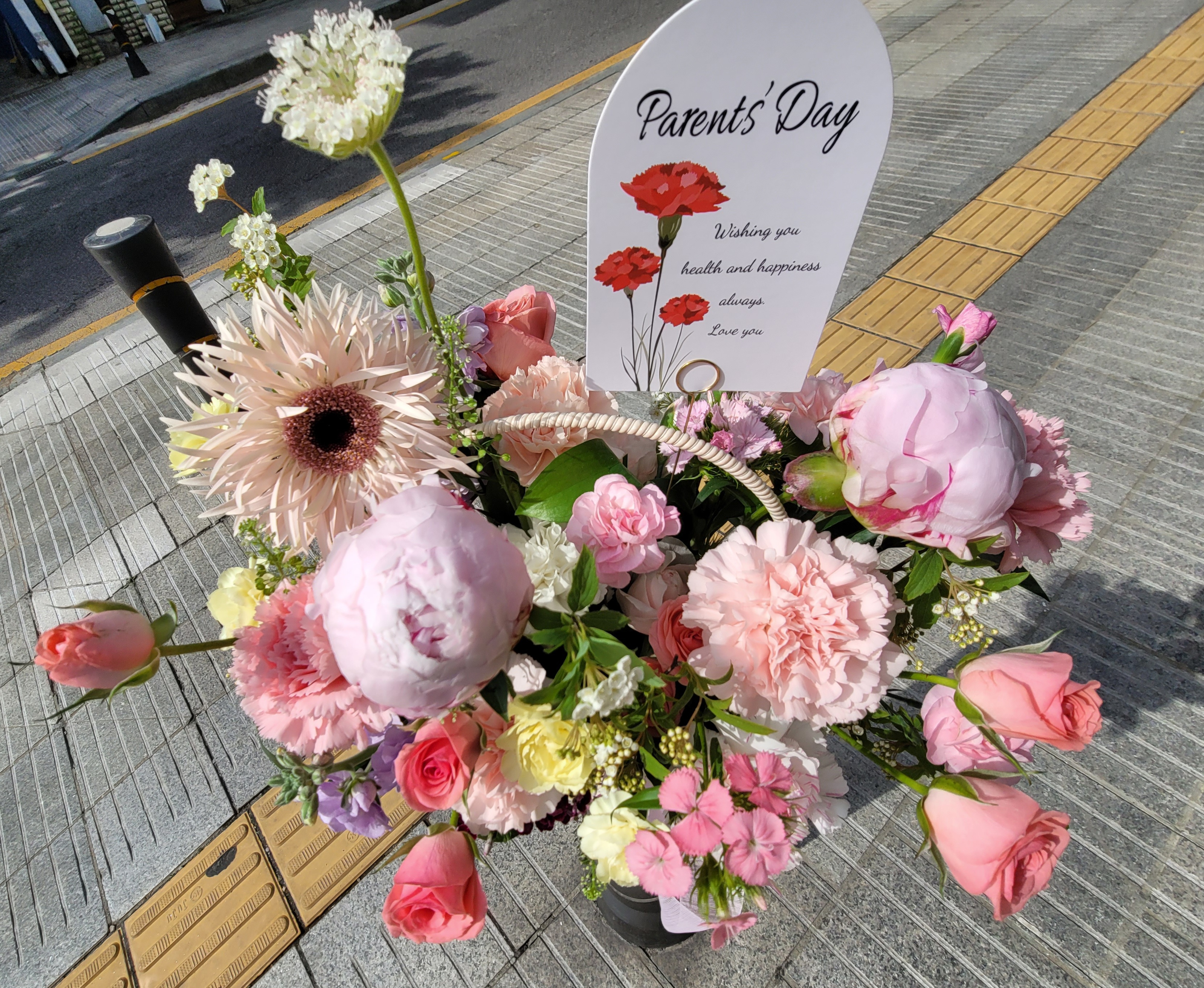 작약과 카네이션이 어우러진 꽃바구니는 전통과 현대의 감성이 섞인 특별한 구성이에요. 카네이션 하나만으로도 의미가 충분하지만, 작약이 더해지면 시각적인 풍성함은 물론, 감정의 깊이도 배가돼요. 두 꽃이 만들어내는 하모니는 그 어떤 말보다도 진심을 잘 전달해줘요.