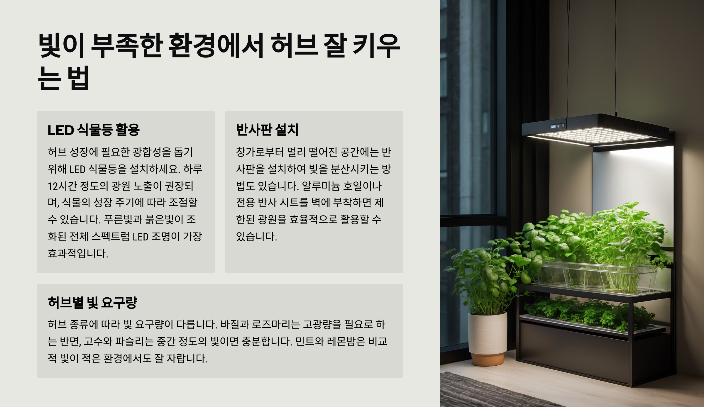 | 허브 종류 | 필요한 햇빛 | 추가 조명 필요 여부 |