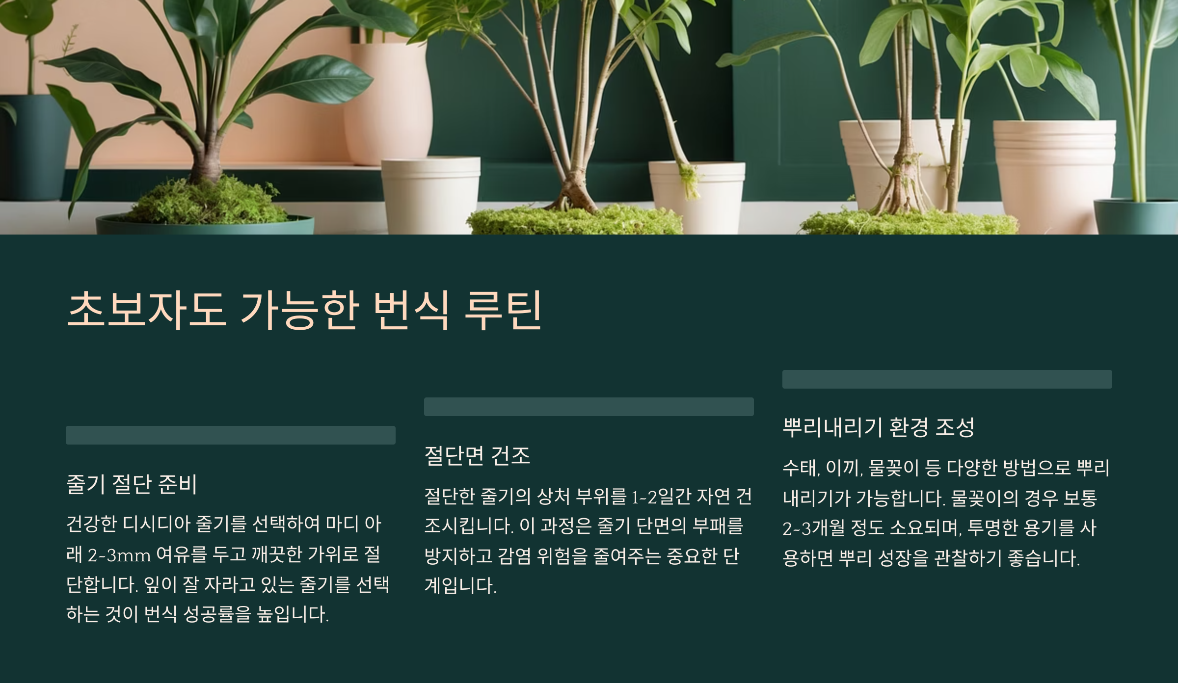 디시디아는 줄기 절단 방식으로 번식하는 게 일반적이에요. 잎이 2~3개 달린 건강한 줄기를 잘라낸 후, 아래쪽 잎을 제거하고 물꽂이 또는 흙꽂이로 진행하면 된답니다. 이 방법은 초보자도 쉽게 따라 할 수 있어요.