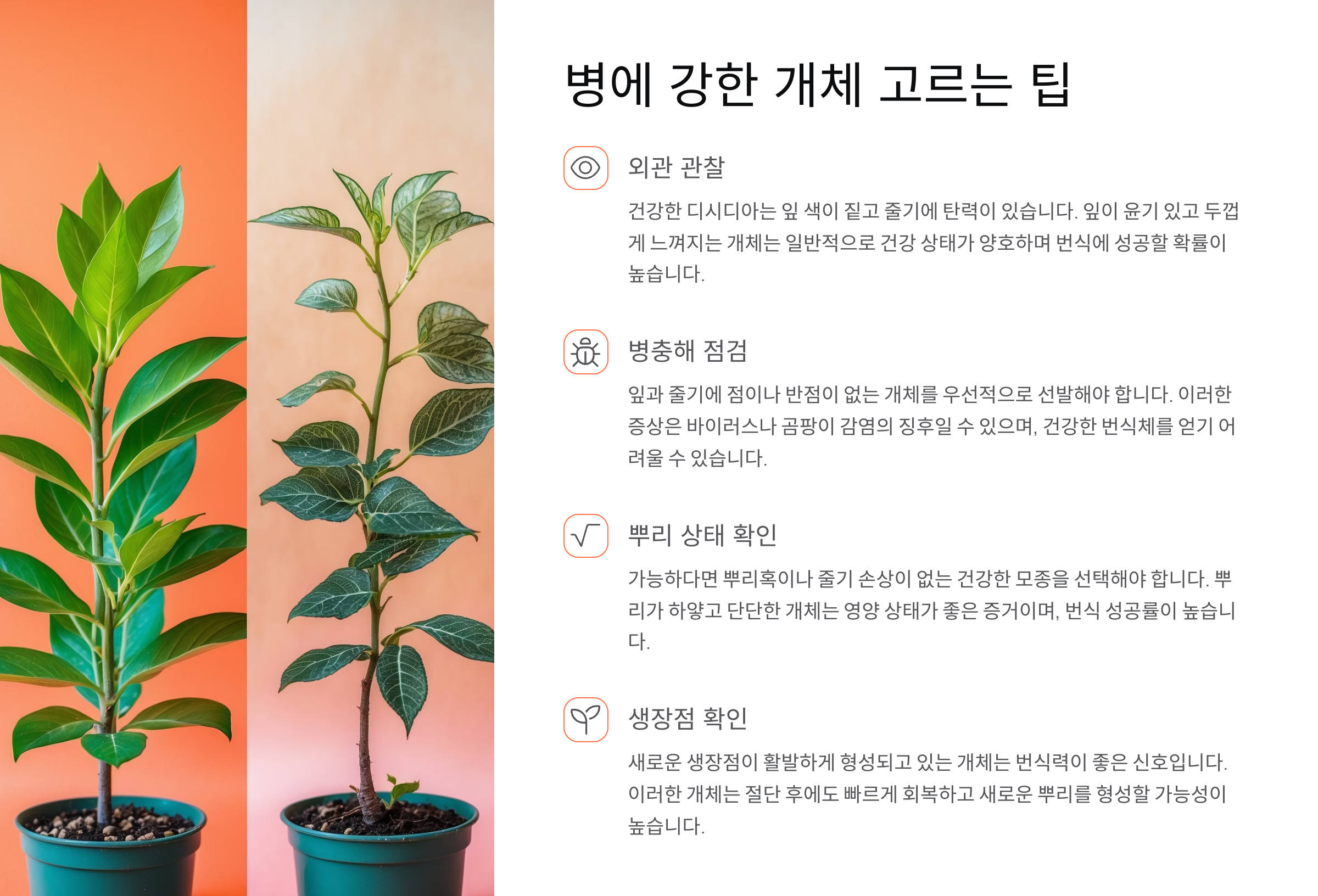 내가 생각했을 때 디시디아 번식의 핵심은 바로 ‘적절한 환경과 타이밍’이에요. 아무리 잘라내고 심어도 환경이 맞지 않으면 잘 자라지 않거든요.