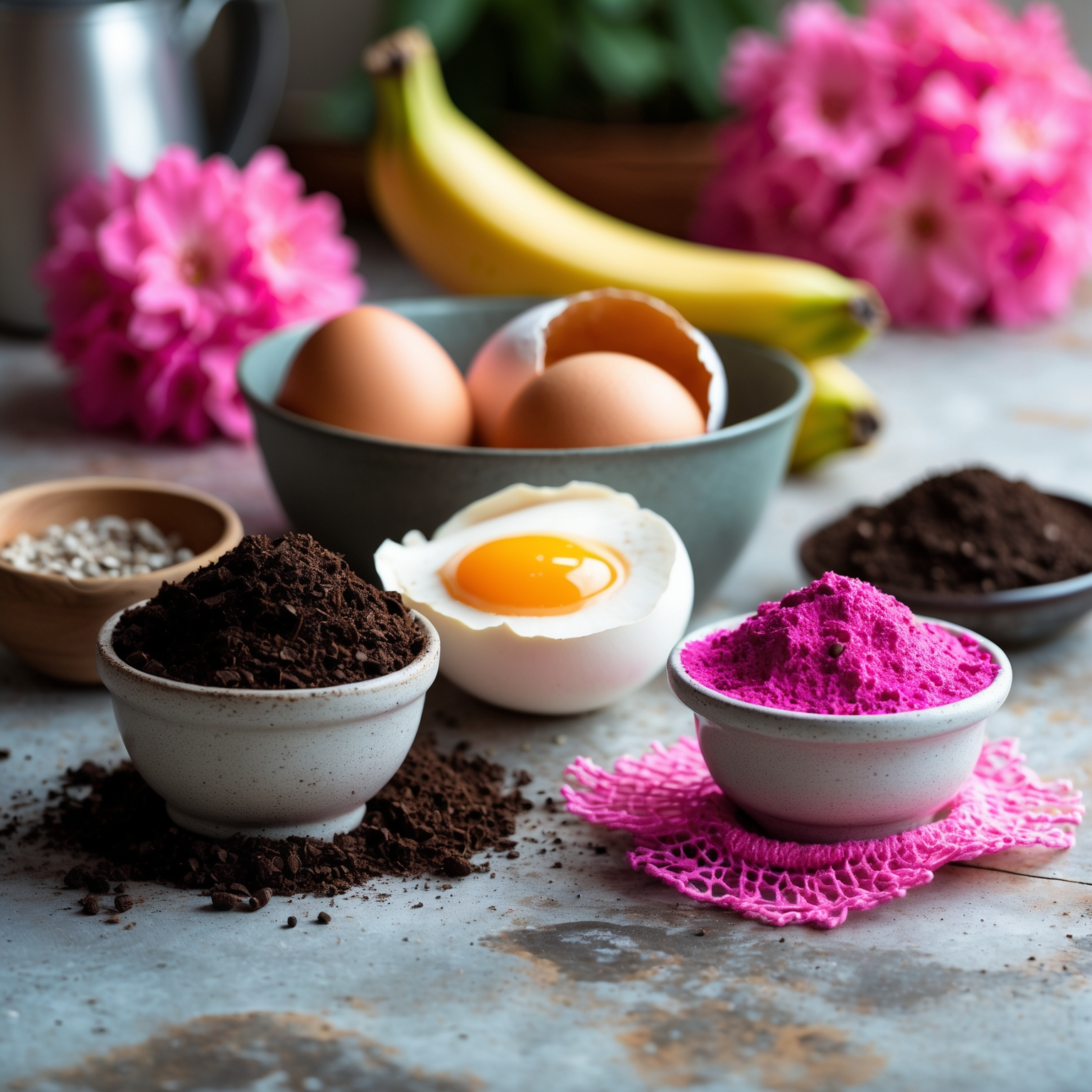또한 커피 찌꺼기를 잘 말려서 흙 위에 살짝 뿌리면 질소 공급에 좋아요. 다만 산성이 강하기 때문에 다육이나 산성 토양을 좋아하는 식물에만 사용하는 게 안전해요. 계란 껍질도 마찬가지로 말린 후 가루로 만들어주면 칼슘 공급원으로 활용할 수 있어요.