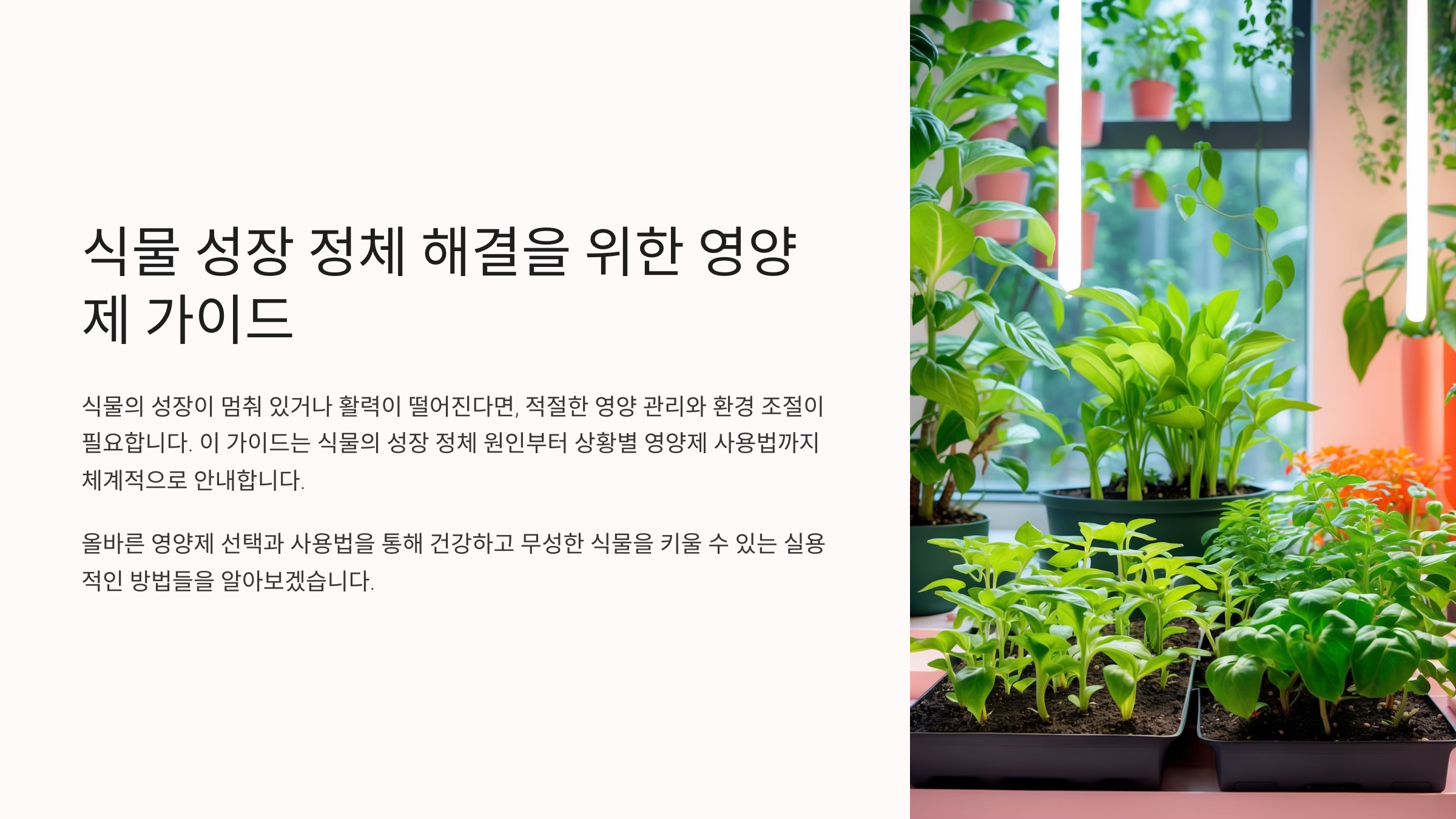 급성장은 기회이자 도전이에요. 영양을 제대로 맞춰주면 식물은 놀라운 속도로 회복하고 성장하죠. 그럼 다음은 ‘재배환경에 따른 제품 추천’을 알려드릴게요. 공간과 환경에 맞는 제품 선택법을 정리해볼게요.