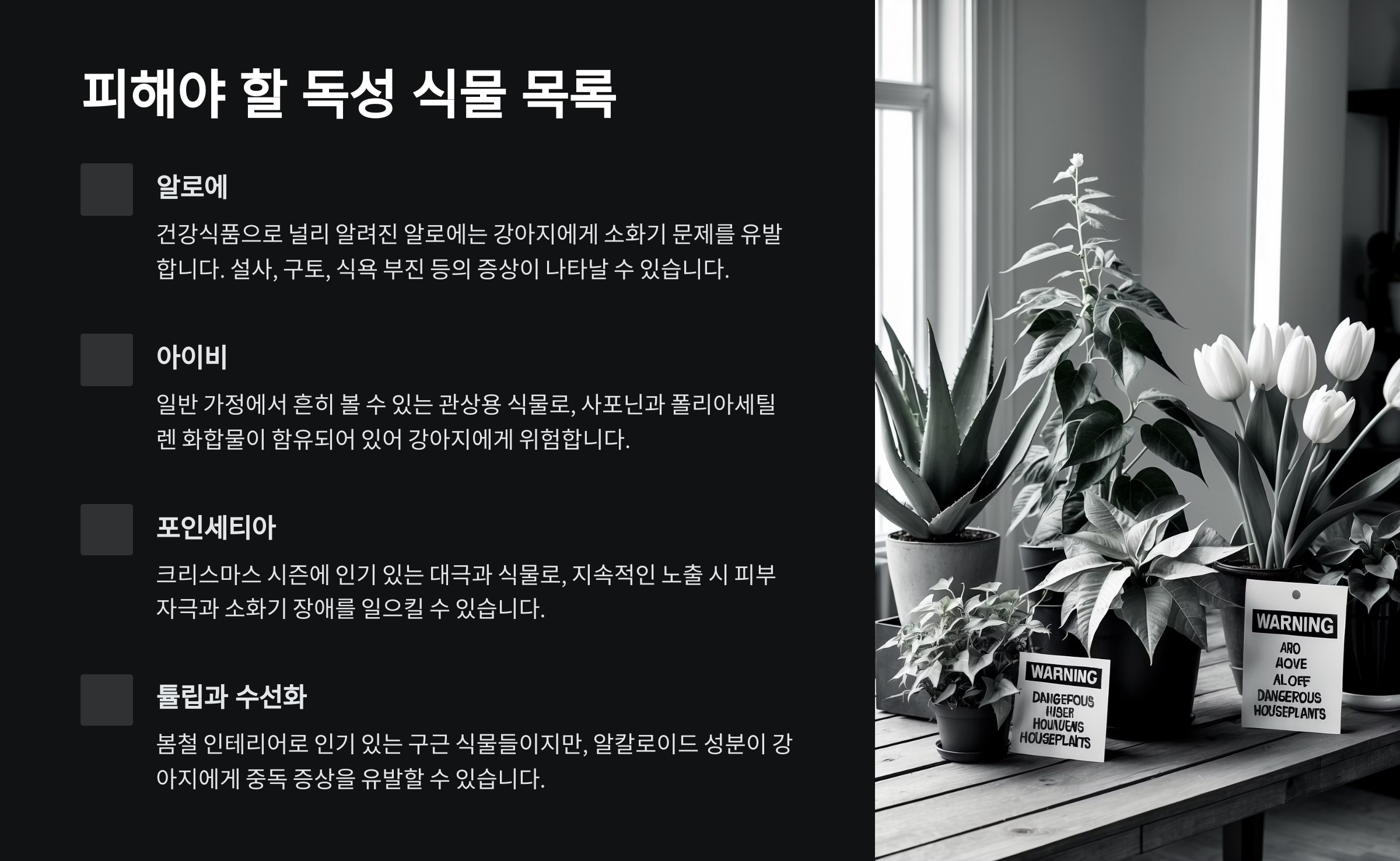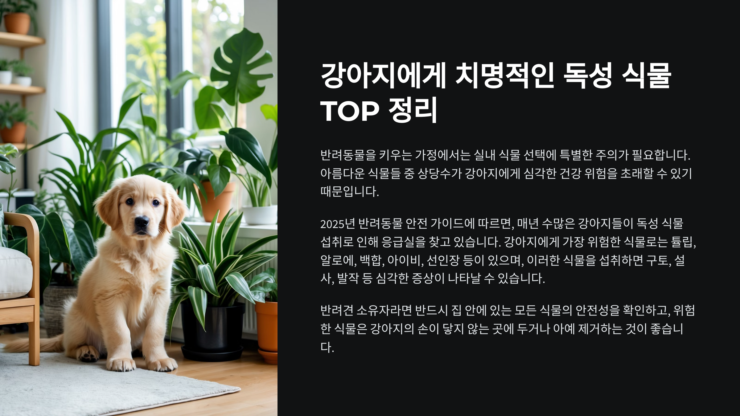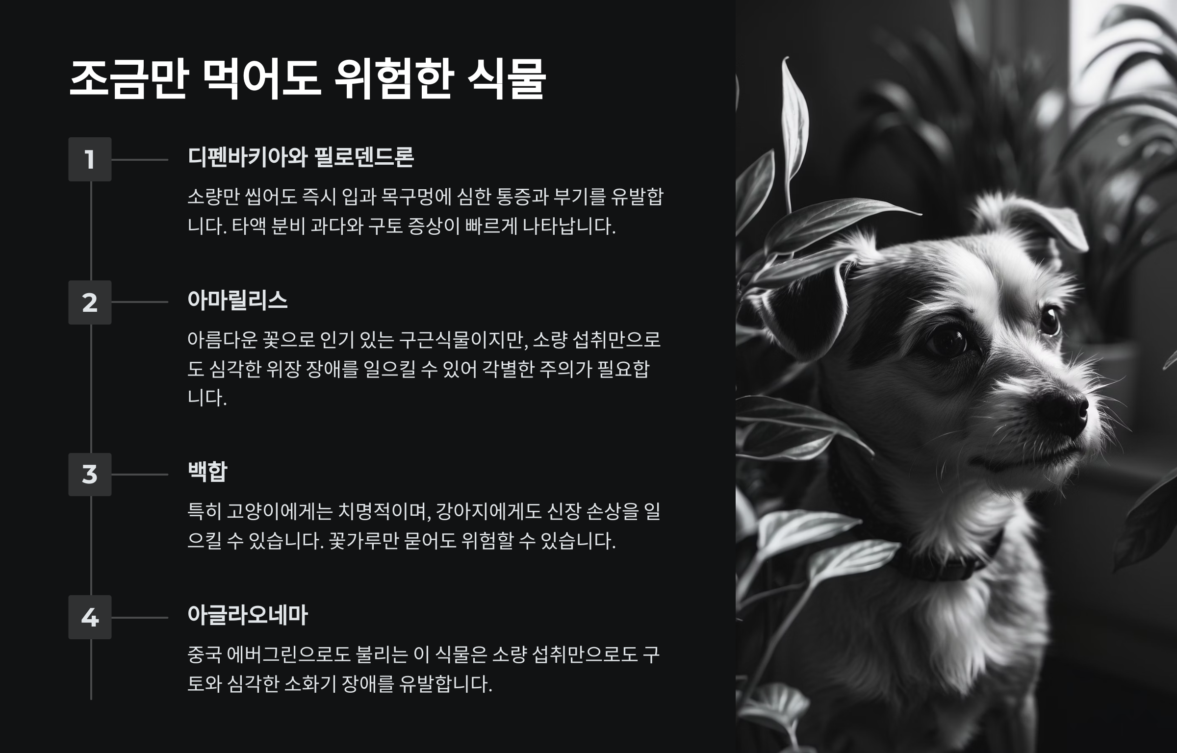 그럼 지금부터 강아지와 함께 사는 집이라면 절대 놓쳐선 안 될 위험 식물 리스트와 예방 팁들을 본격적으로 정리해볼게요!