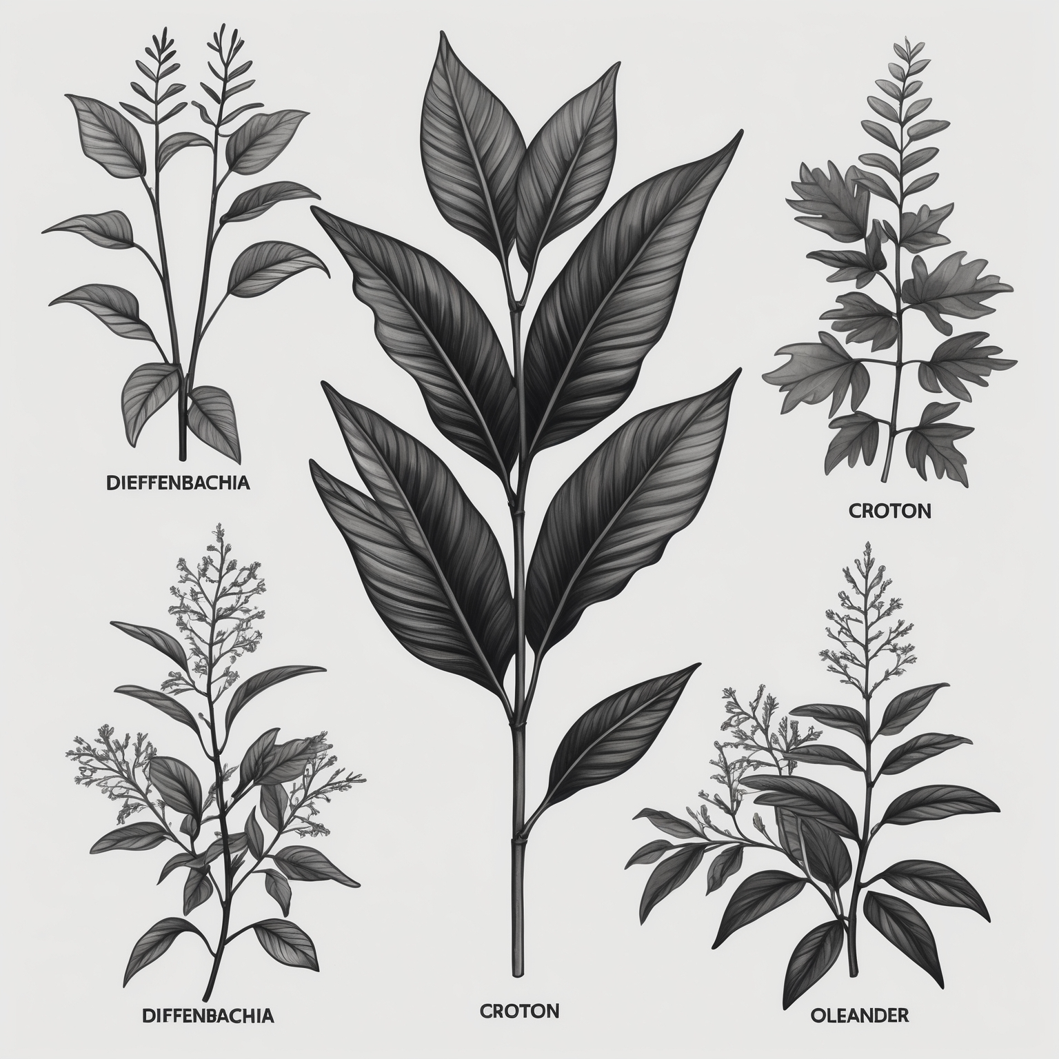| 디펜바키아 | 아스파라긴 산 | 설사, 구토, 신장 손상 |
