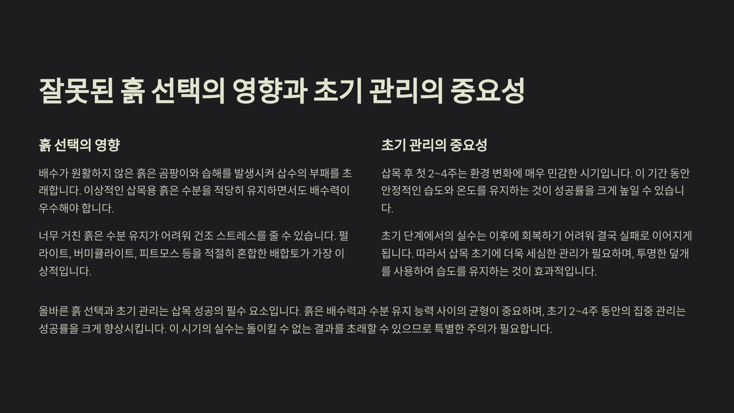 잘못된 흙 선택의 영향