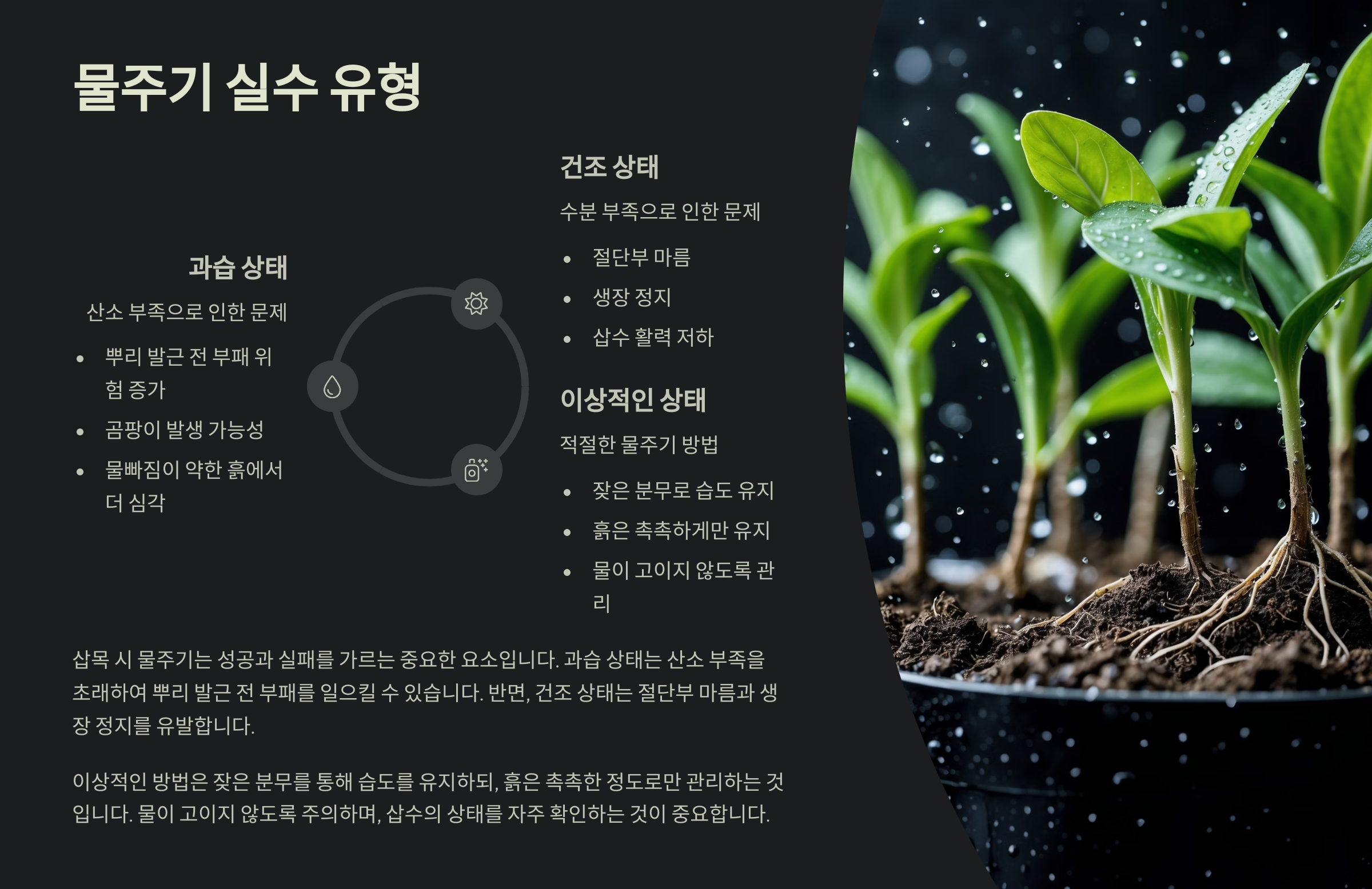 | 과습 | 줄기 썩음 유발 |
