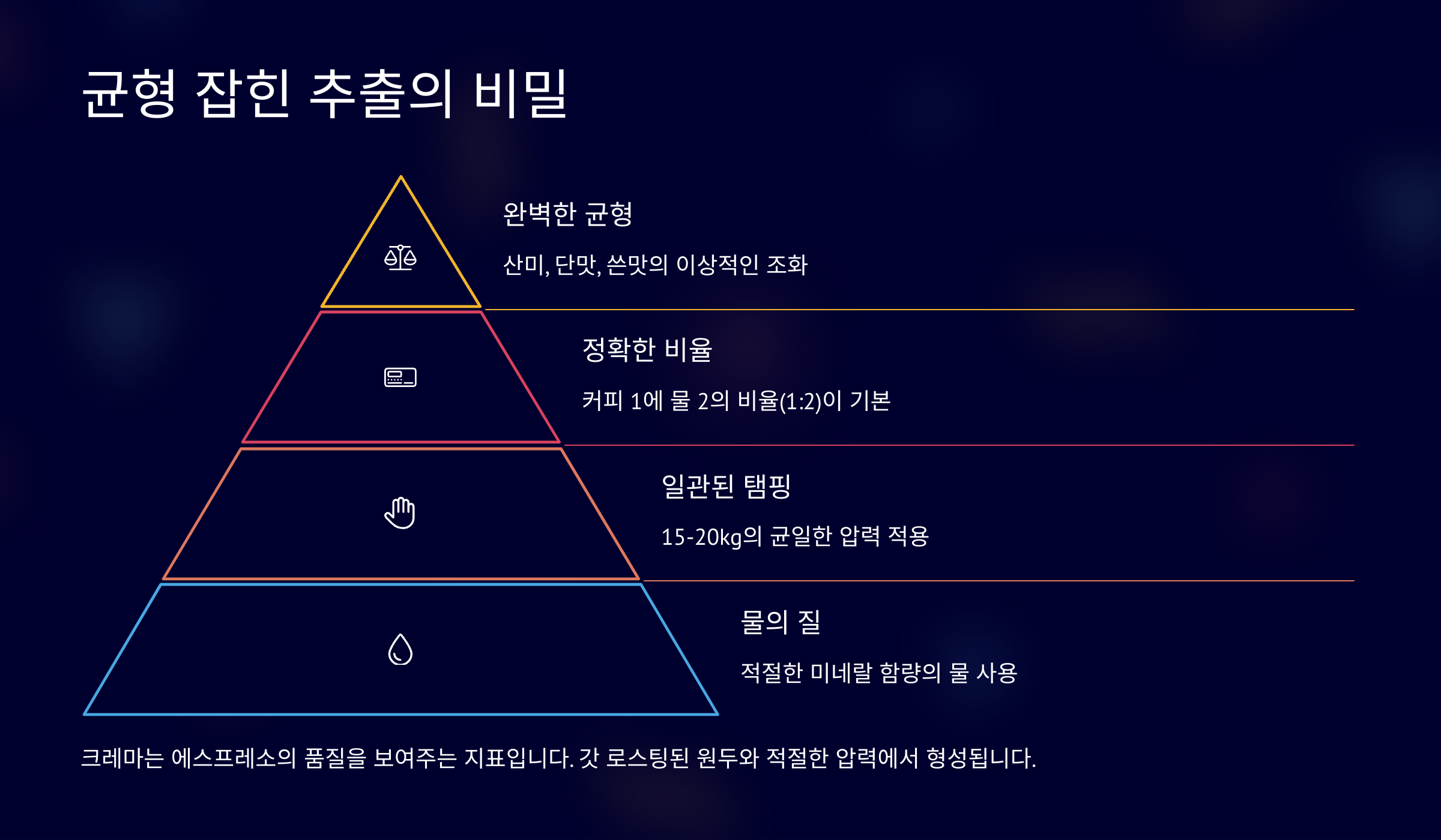 이번 글에서는 내가 생각했을 때 정말 제대로 된 에스프레소 한잔을 만들기 위해 알아야 할 모든 요소들을 꼼꼼하게 다뤄볼게요. 이제 커피 머신 앞에서 자신 있게 버튼을 누를 수 있도록 도와줄게요! 🔍