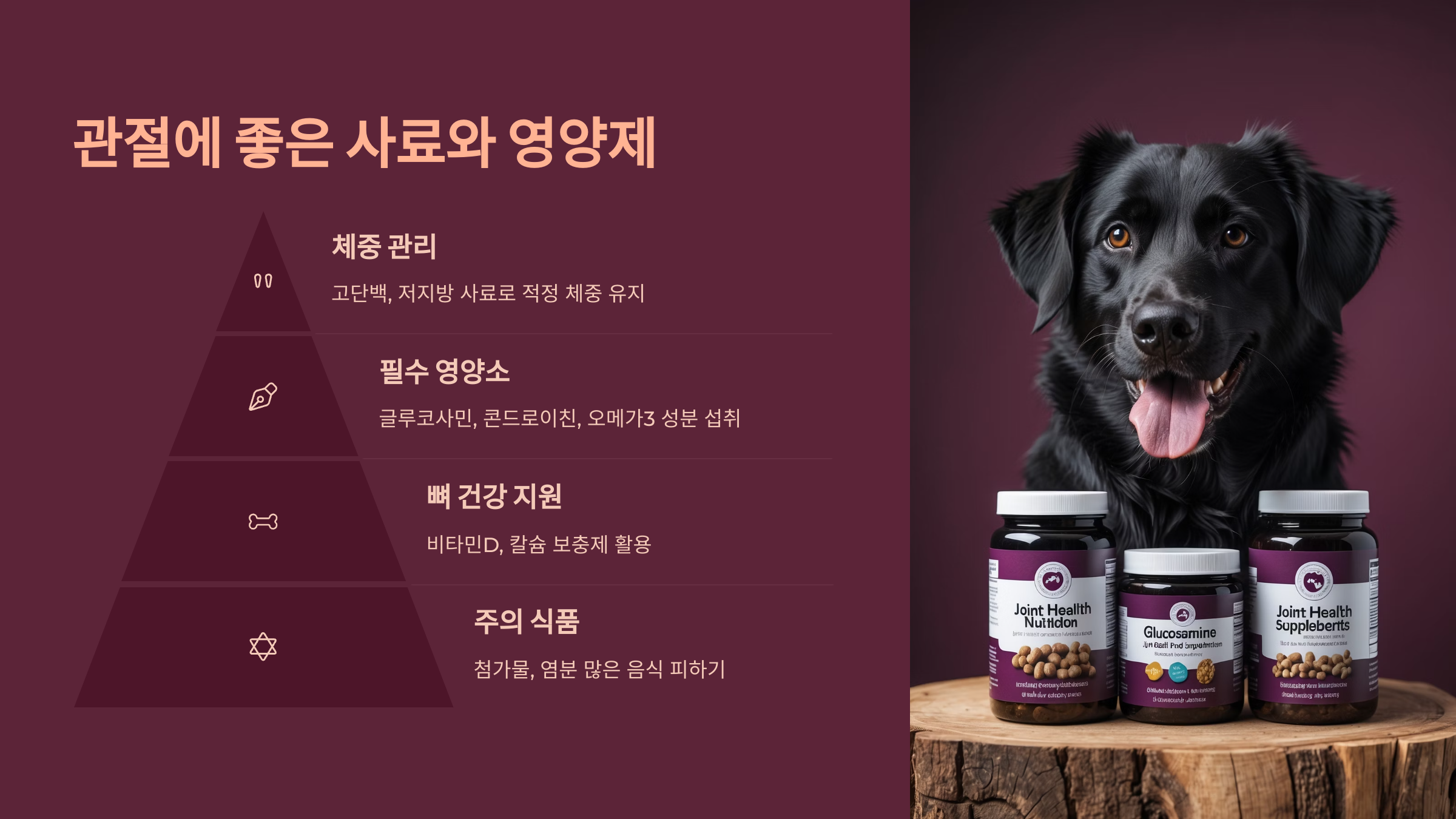 단순히 사료만 먹이기보다, 관절 전용 영양제를 함께 급여하면 더 효과적이에요. 특히 나이가 들수록 자연 생성이 줄어드니 외부 보충이 필요해요.