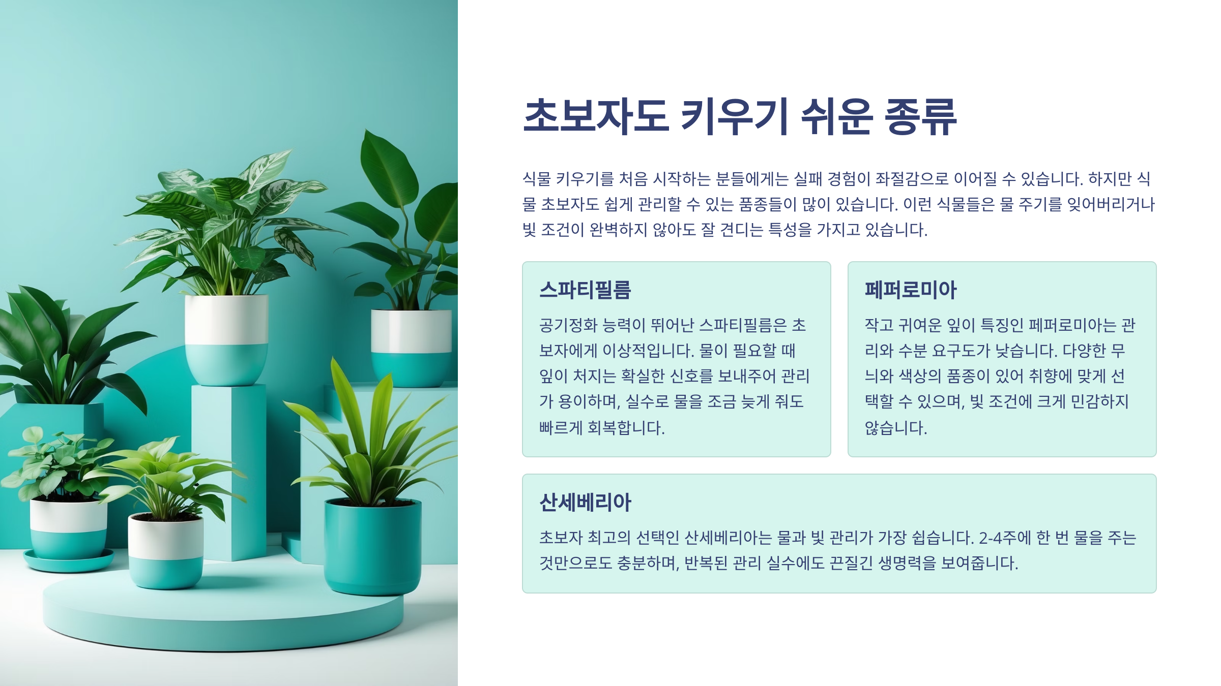 식물을 처음 키우는 분들은 복잡한 관리가 필요 없는 화초부터 시작하는 게 좋아요. 물 주는 주기나 햇빛, 온도에 크게 민감하지 않은 식물들이라면 실패 확률도 줄고, 재미도 배가되죠! 🌿