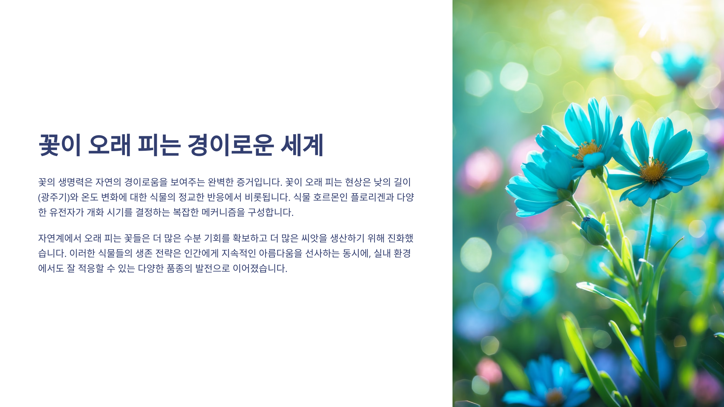 꽃이 오래 피는 데에는 식물의 유전적 특성과 환경 조건이 복합적으로 작용해요. 어떤 품종은 본래 유전적으로 개화 기간이 길도록 설계되어 있어서, 특별한 관리를 하지 않아도 2~3개월 이상 피어 있는 경우도 있답니다. 대표적인 예가 바로 '칼랑코에'와 '시클라멘'이에요.
