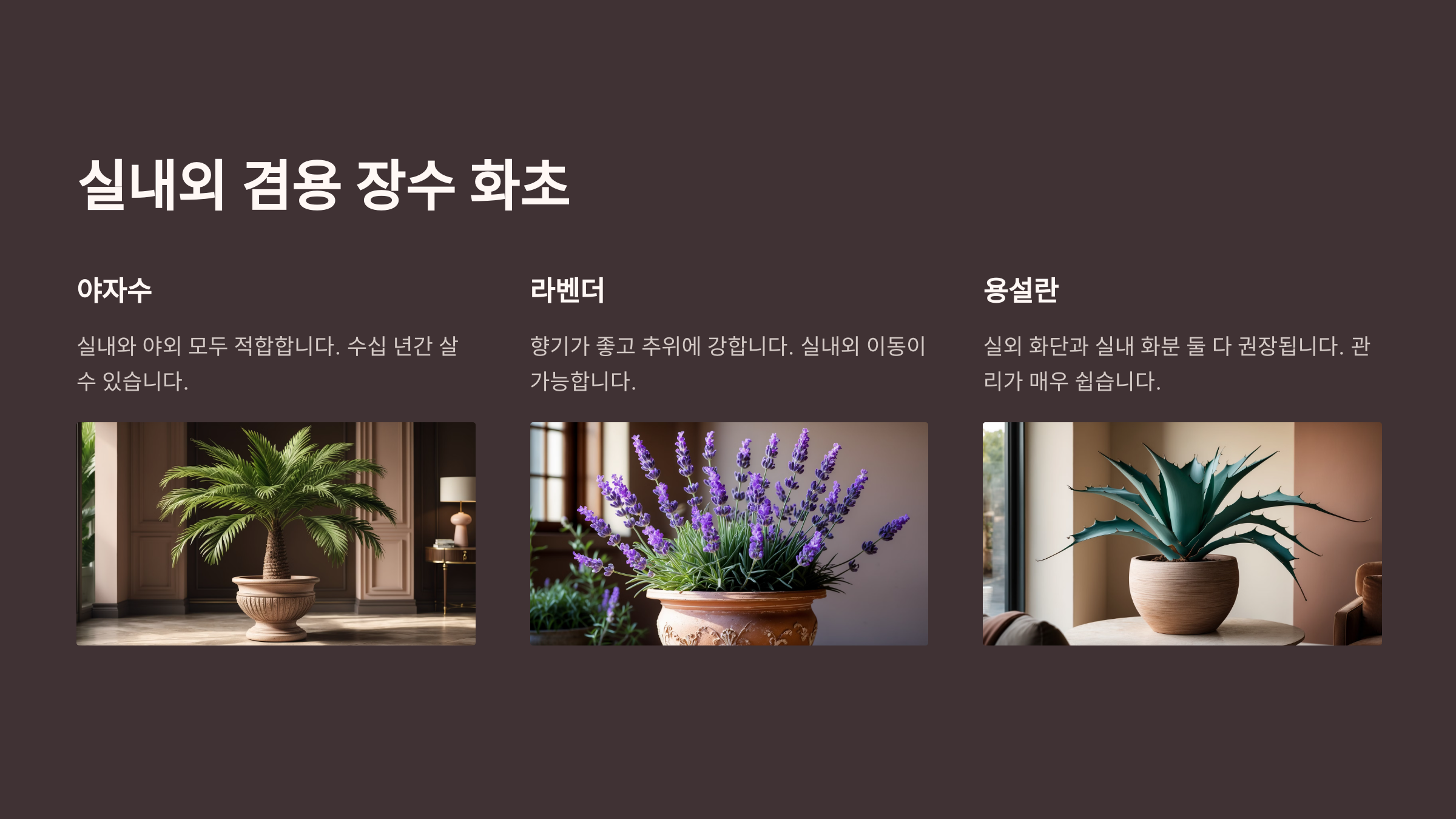 | 식물 이름 | 봄/가을 | 여름 | 겨울 |