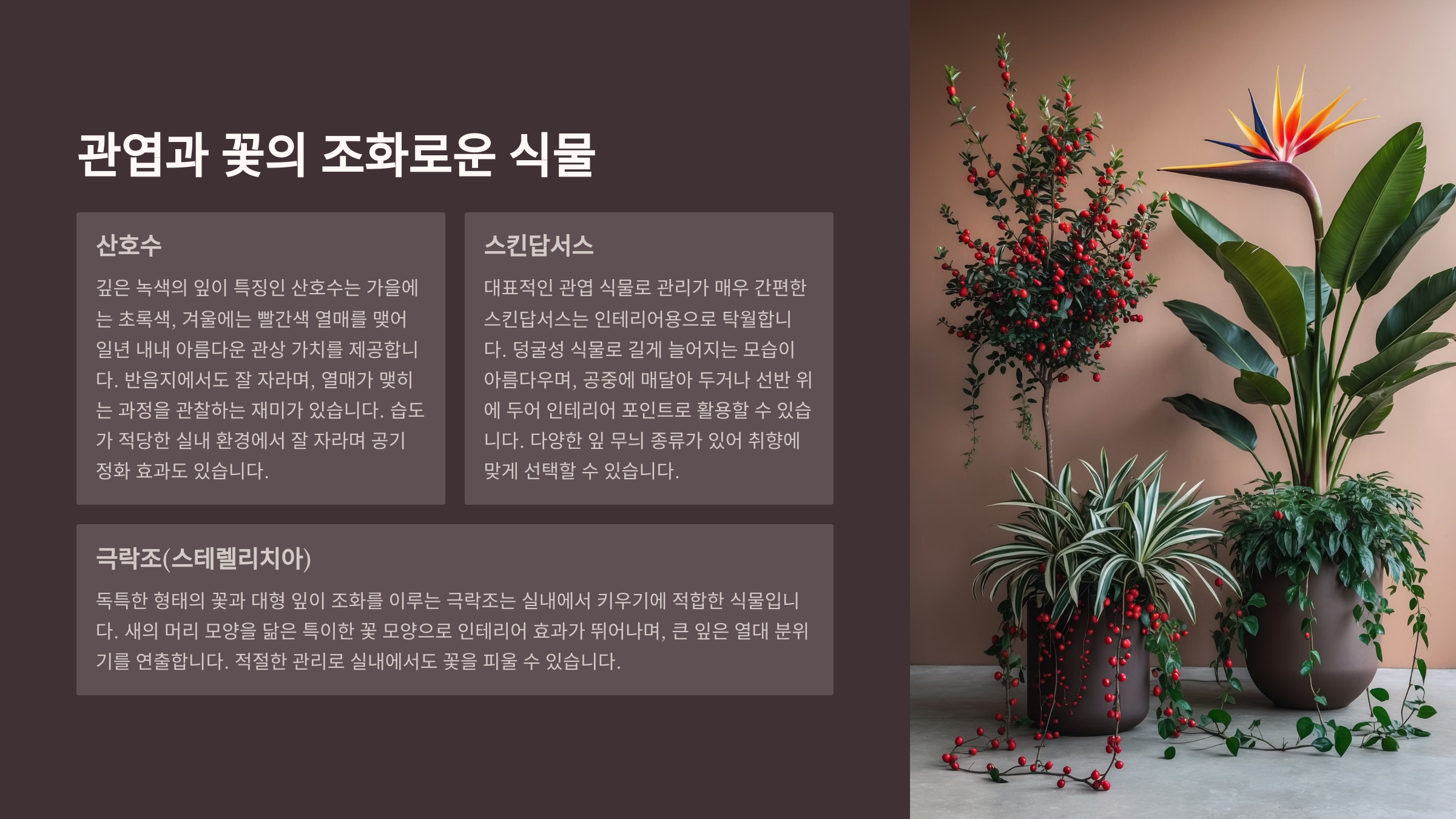 관엽과 꽃의 조화로운 종류🌺