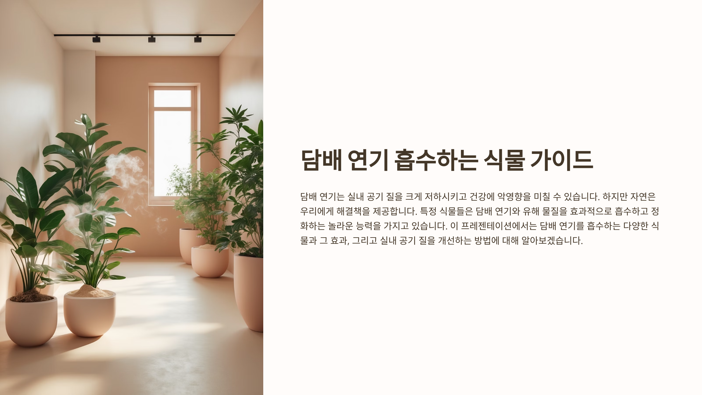 식물 하나만 잘 배치해도 실내 공기의 질이 확 달라지죠. 특히 식물들은 인공 탈취제나 방향제보다 더 자연스럽고 건강하게 담배 냄새를 줄여줄 수 있어요.