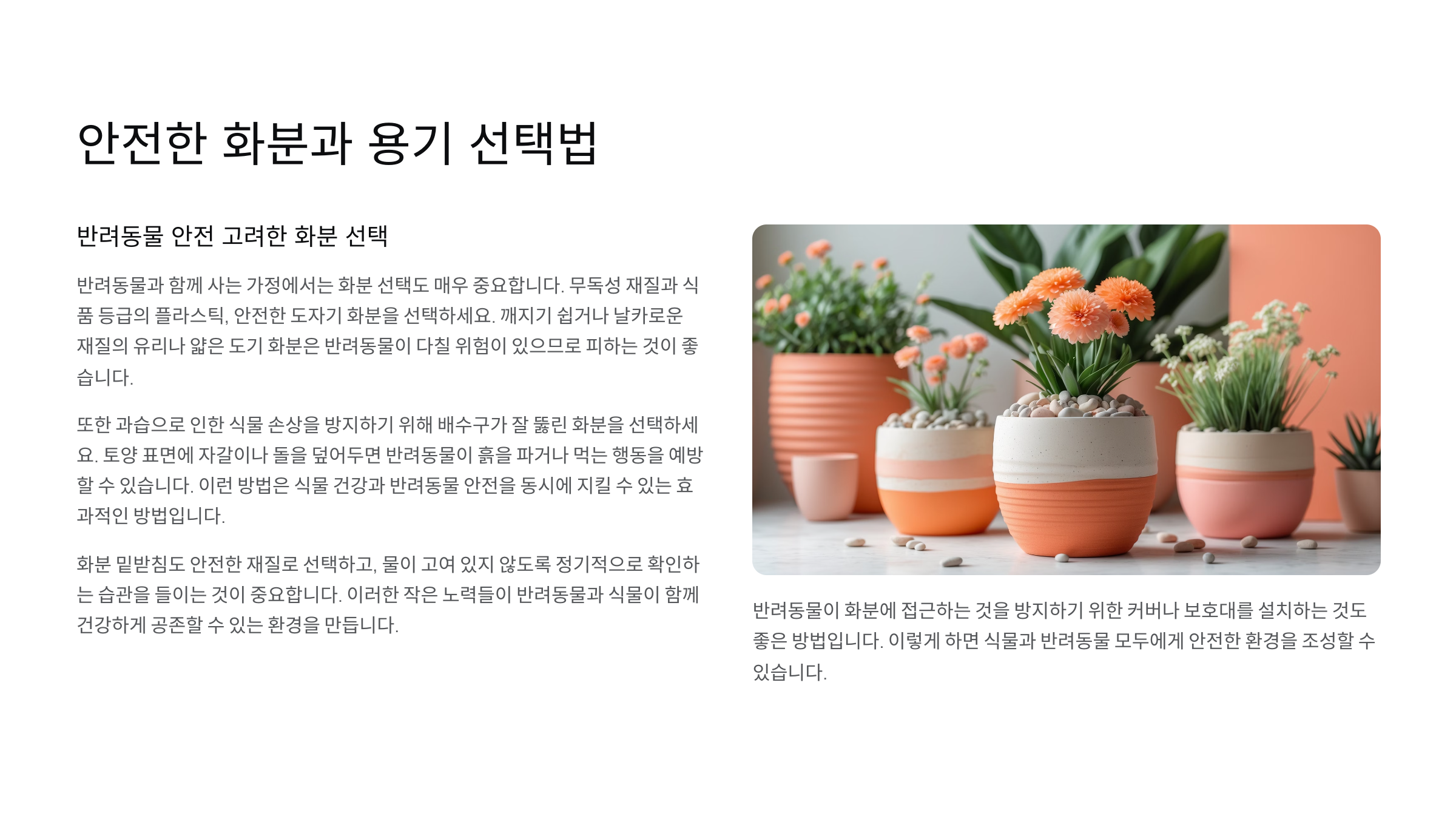 다음은 마지막 본문 섹션! 안전한 화분 선택법에 대해 알아볼 차례예요!🪴