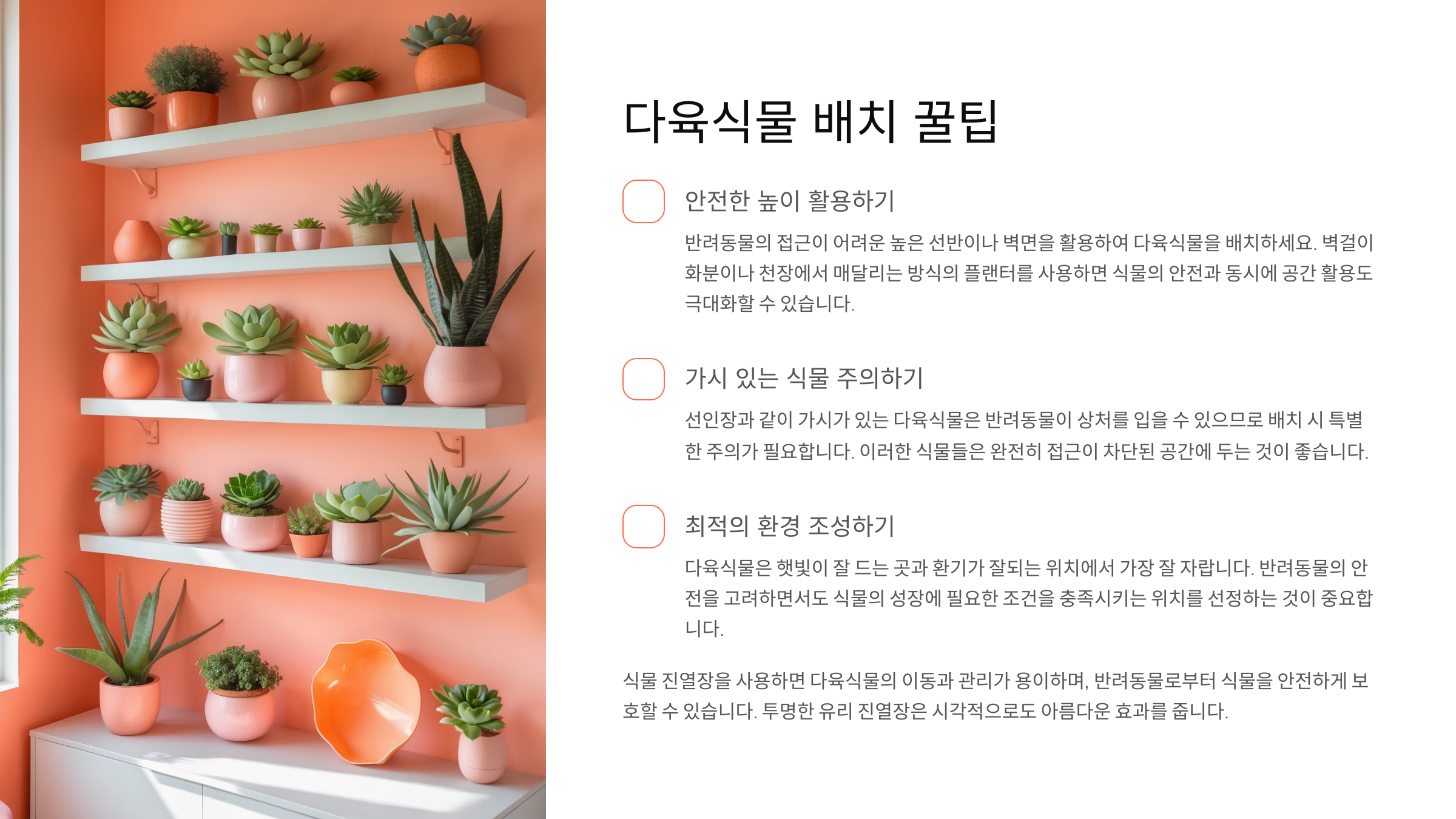 이제 반려동물과 다육이 모두 만족하는 공간을 만들 준비가 되셨죠? ✨