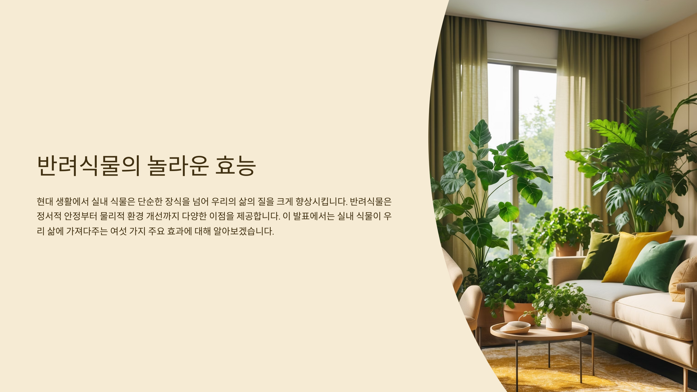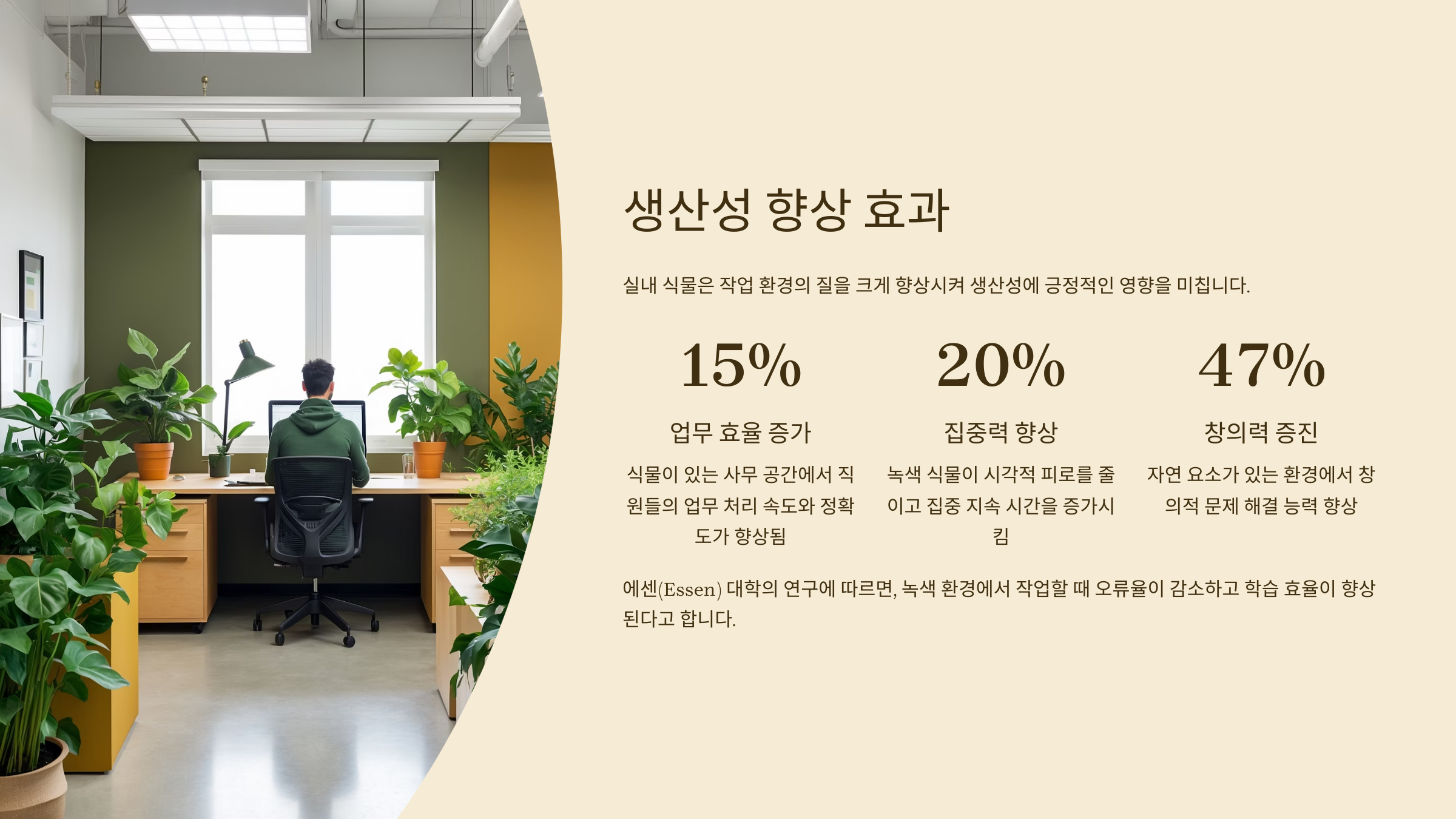 심리학 연구에서도 식물이 사람의 감정에 긍정적인 작용을 한다는 결과가 많아요. 사무실이나 집안에 식물을 두었을 때 우울감과 불안감이 줄어들고, 마음의 평화가 찾아오는 효과가 있었답니다.