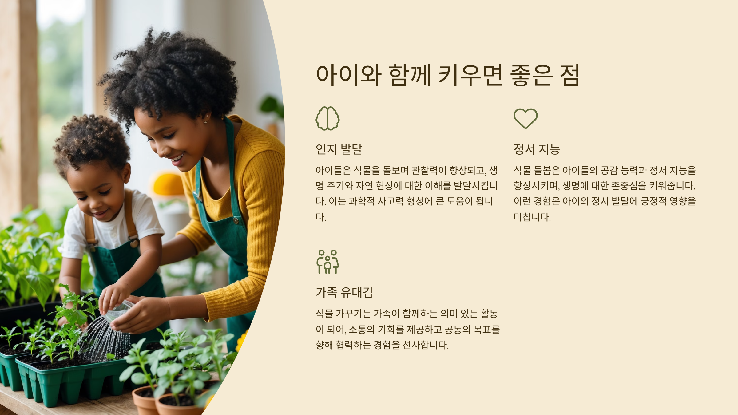특히 다육이는 급하게 성장하지 않아서 기다림을 배우기에 참 좋은 식물이에요. 매일매일 자라는 모습은 작지만 꾸준한 변화이고, 아이들에게 인내심과 꾸준함의 가치를 알려주기도 해요.