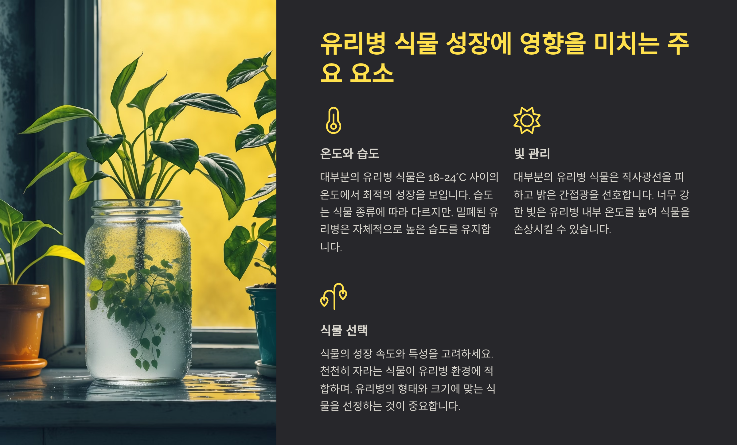 유리병에서 식물 성장에 영향을 미치는 요소 🌿