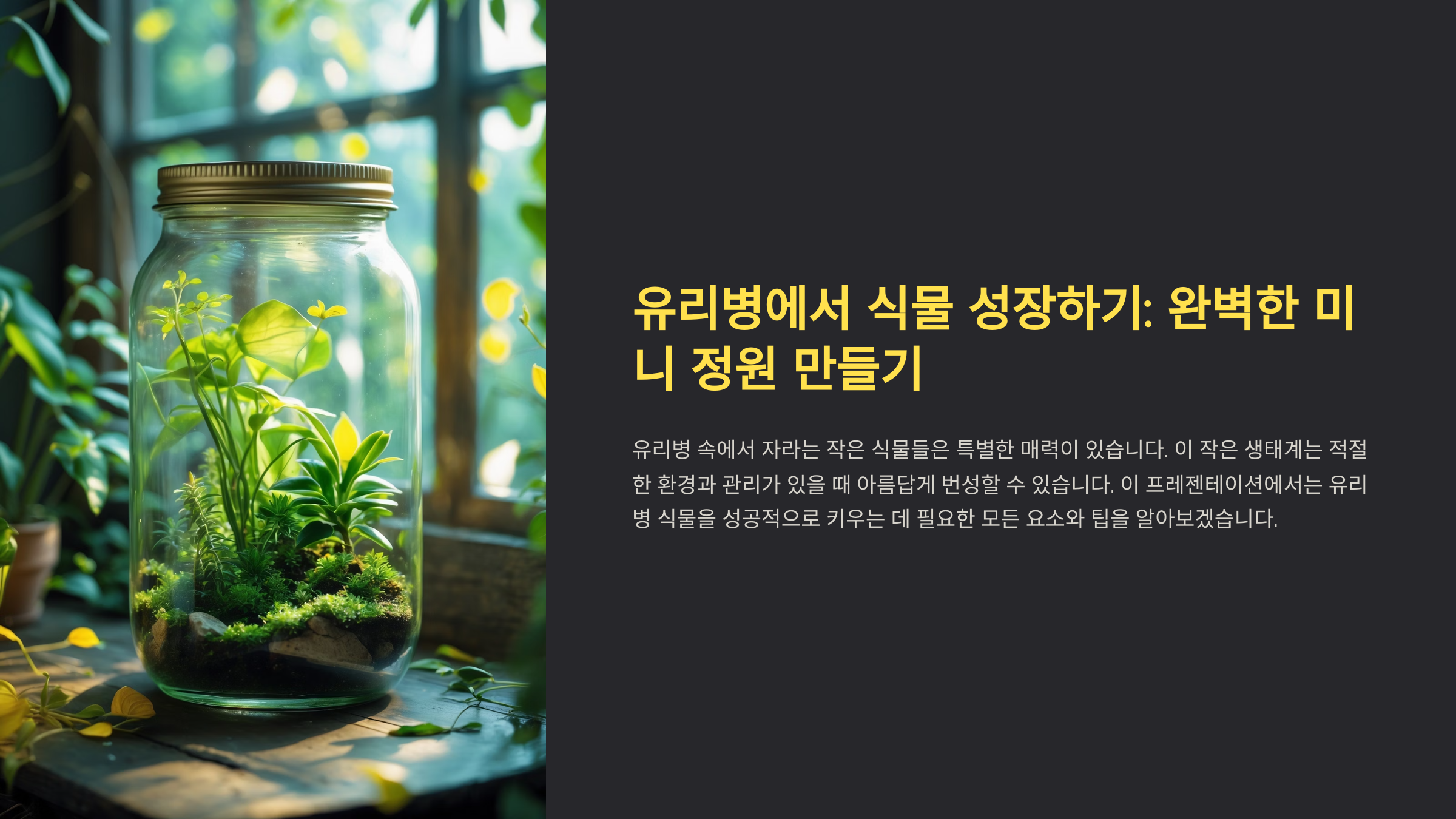 지금부터는 유리병 속 식물들이 어떻게 잘 자랄 수 있는지, 관리하는 방법과 주의할 점들을 하나하나 자세히 알려줄게요. 처음 시작하는 사람도 따라 할 수 있도록 알차게 준비했으니, 끝까지 함께해요! 😊