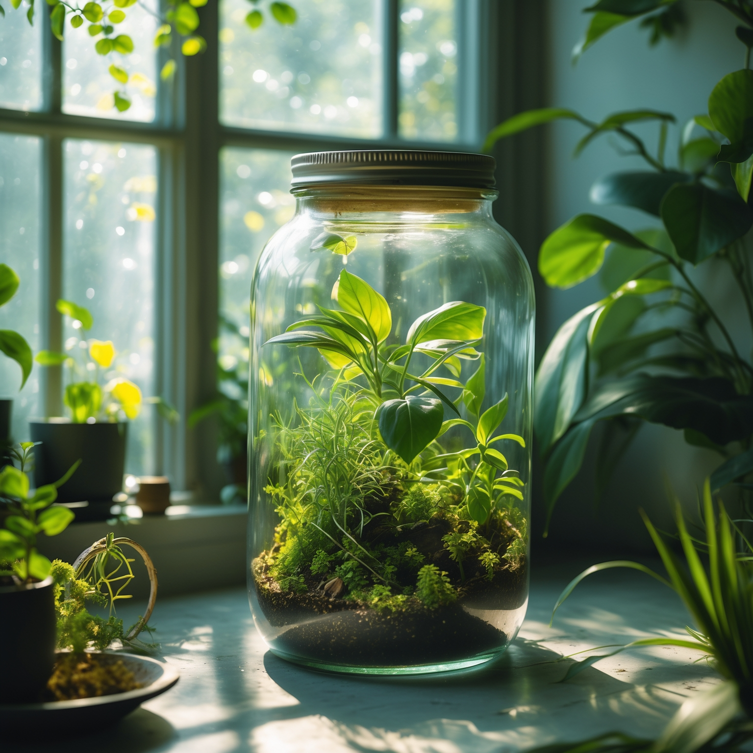 유리병 속 작은 정원은 시각적으로 아름다울 뿐 아니라, 실내 공기 정화에도 도움을 주는 매력적인 식물 인테리어 방법이에요. 밀폐된 공간에서 식물이 자랄 수 있는 이유는 바로 그 안의 미세 생태계 덕분이죠. 유리병은 햇빛, 수분, 산소를 적절하게 유지해 주면서도 공간을 많이 차지하지 않아 현대인들의 라이프스타일에 잘 맞아요.