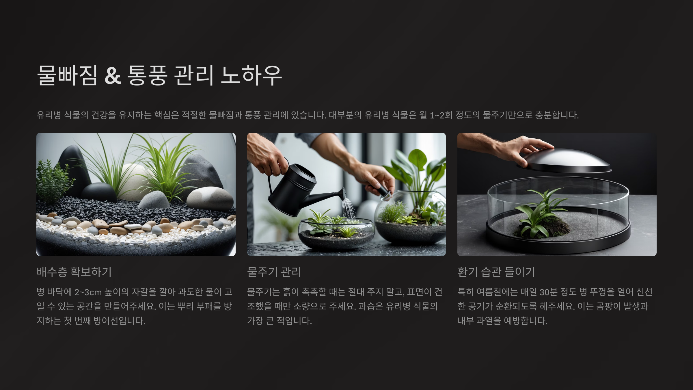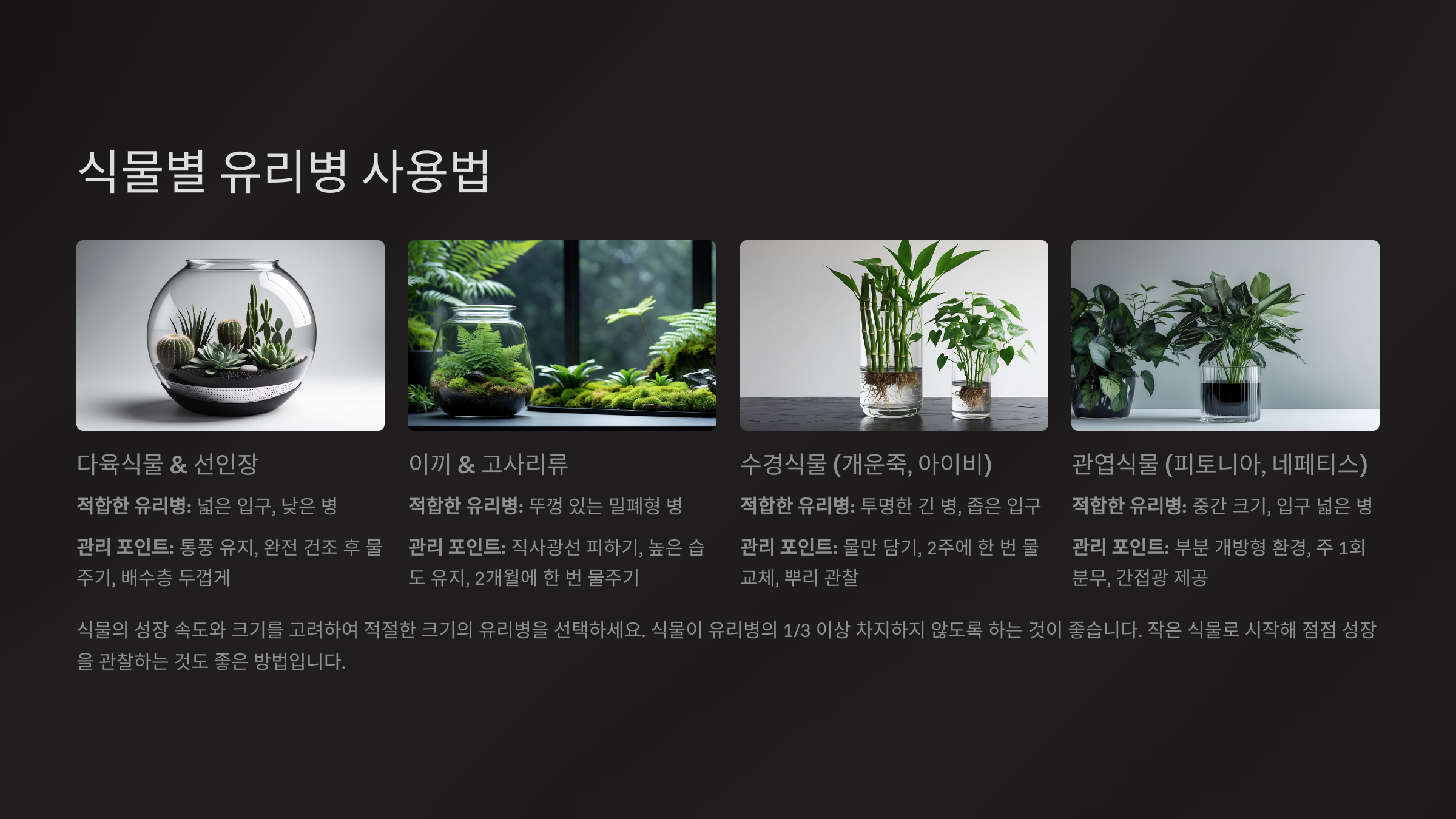 | 유리병 유형 | 물주기 주기 | 방법 | 팁 |