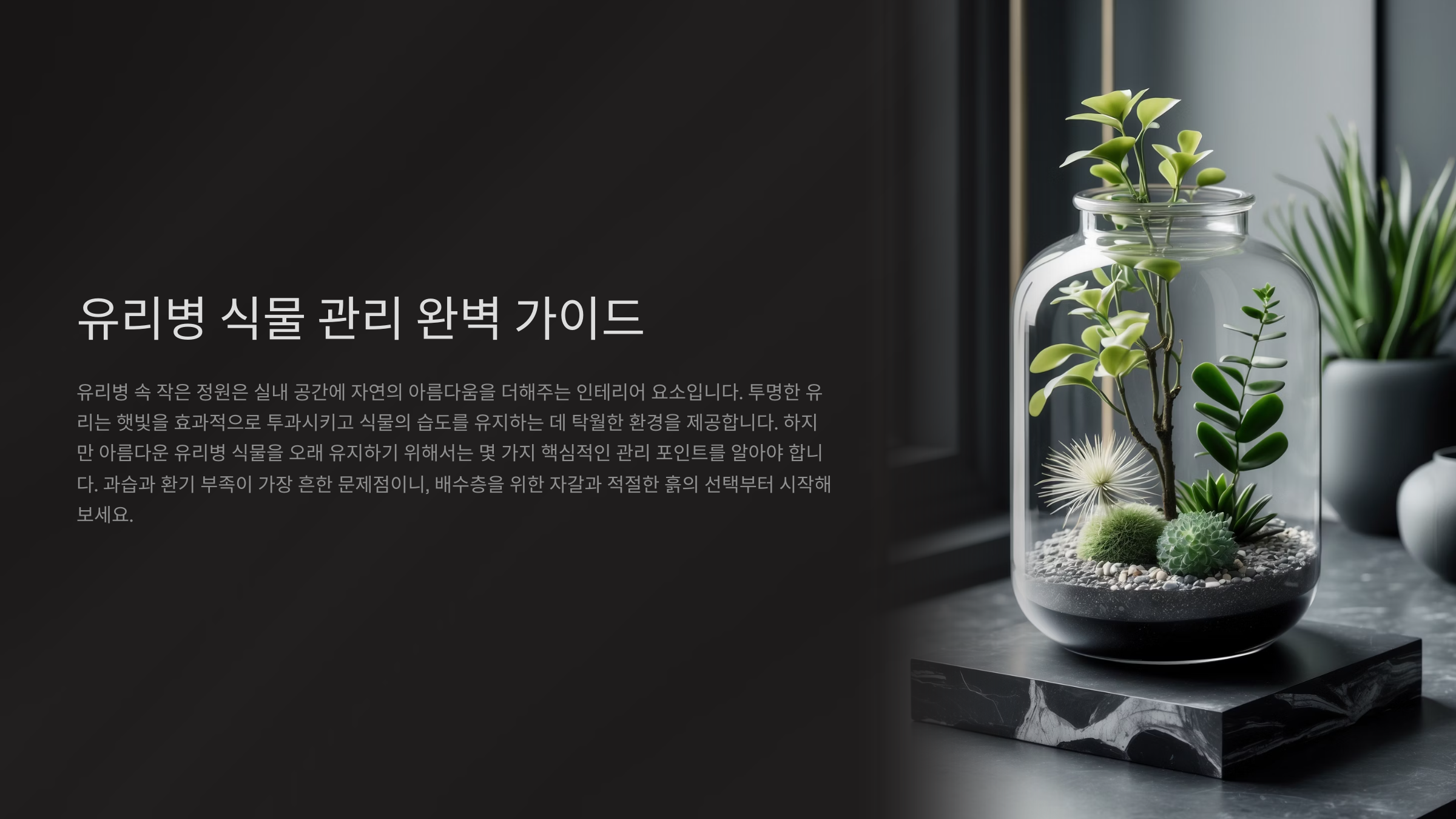 내가 생각했을 때, 유리병 식물은 ‘정성’이 가장 중요해요. 매일 조금씩 살펴보고, 습도와 빛을 조절해주는 것만으로도 식물은 충분히 살아나고 잘 자랄 수 있어요. 죽이는 게 아니라 살리는 마음으로 바라보면, 유리병 속 작은 생태계는 더 오랫동안 살아갈 거예요. 😊