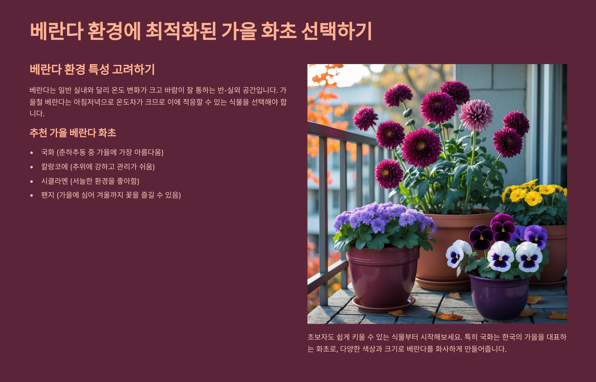 베란다에 적합한 가을 화초 🌿
