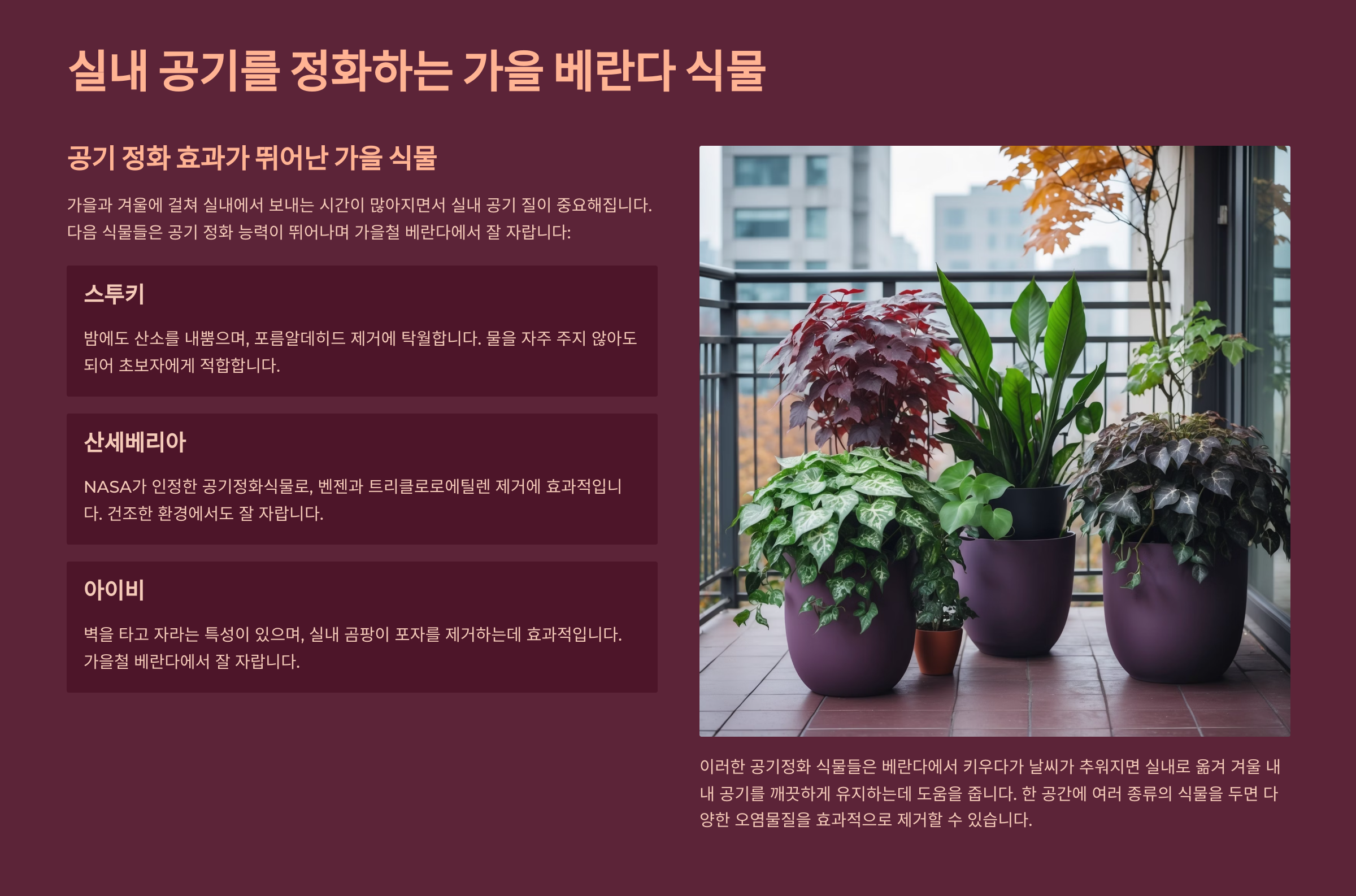 공기 정화 효과 있는 가을 화초 🌬️🌱
