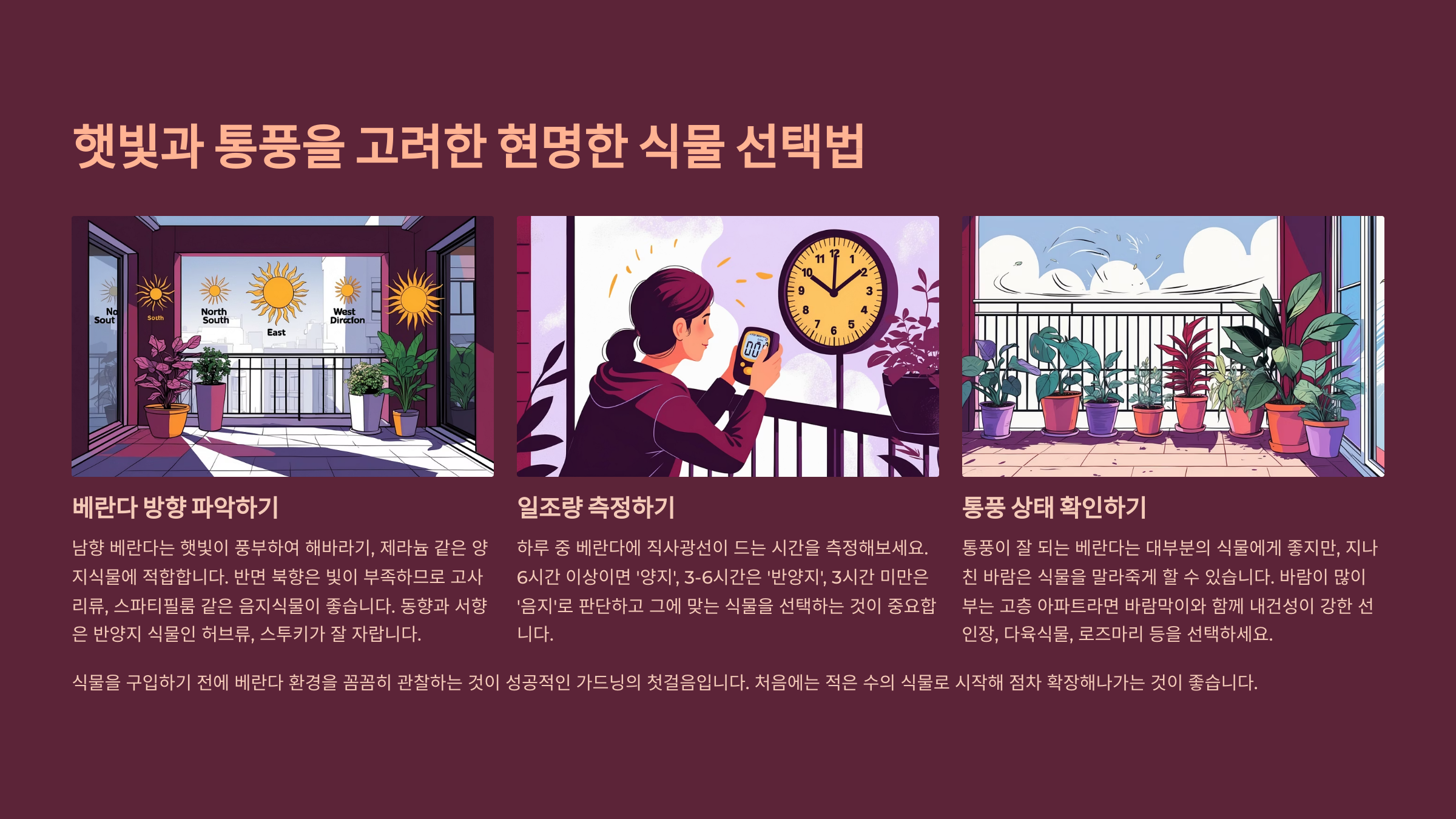| 베란다 방향 | 적합 식물 | 특징 |