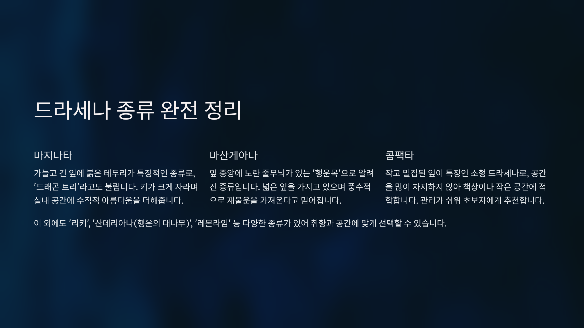 🌼 드라세나 인기 품종 정리표 🌿