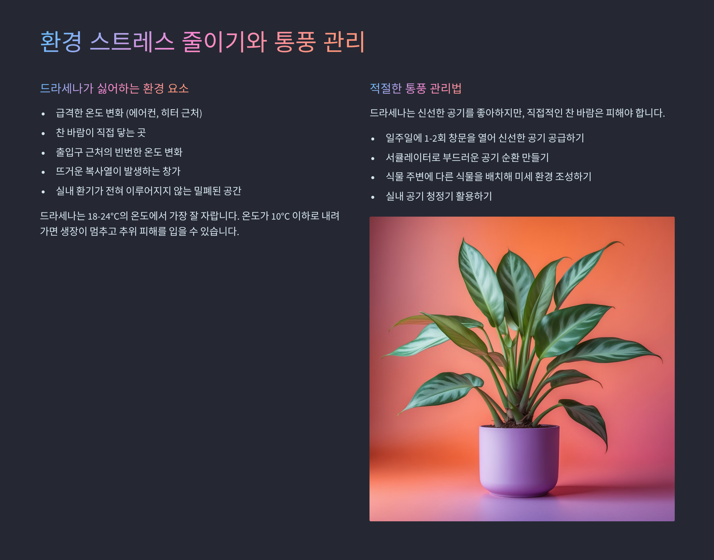 🌿 드라세나 환경 스트레스 요인표 📉