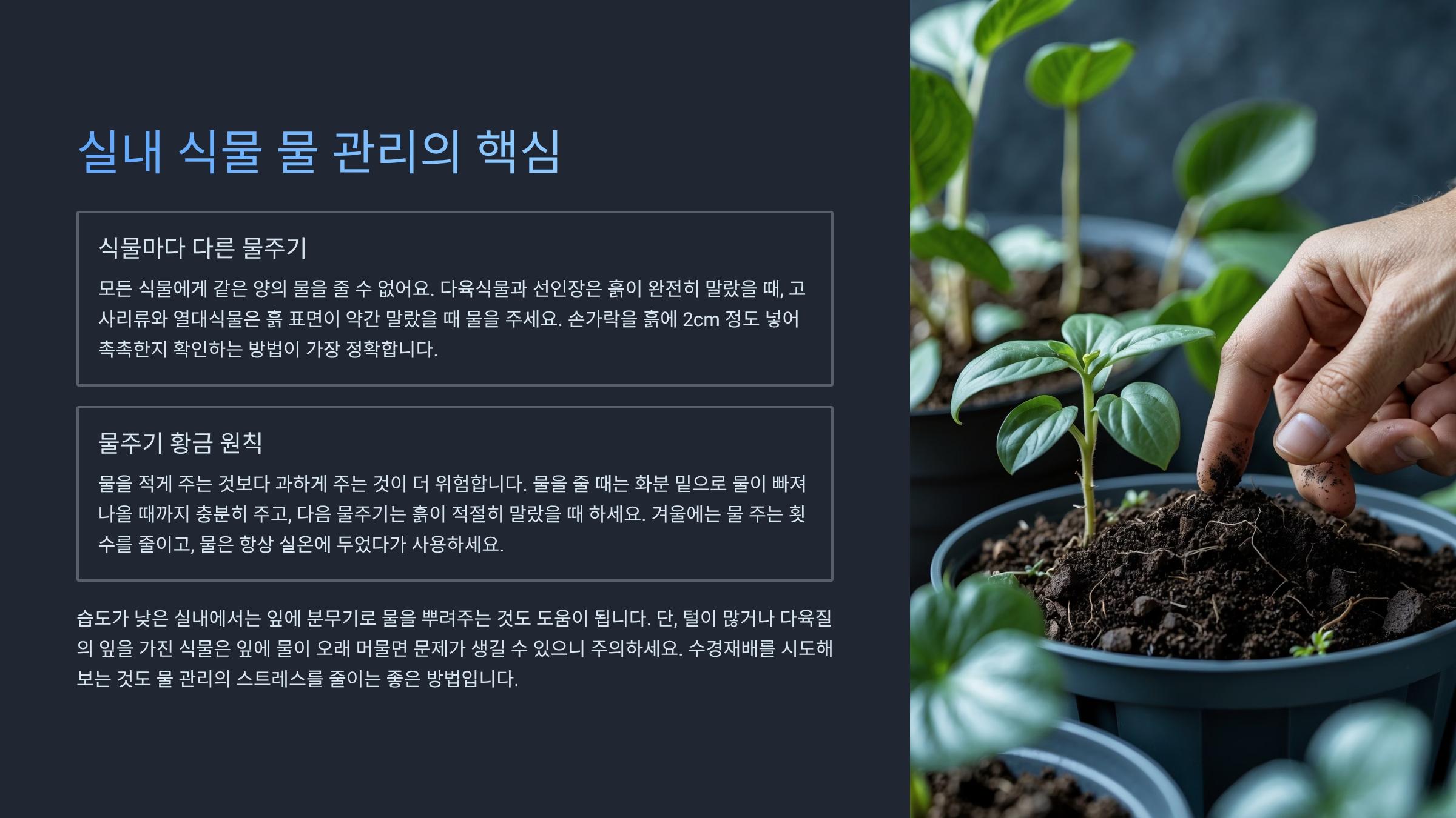 다음으로 물 관리의 핵심 팁과 인테리어 효과까지 살리는 방법을 이어서 볼게요.