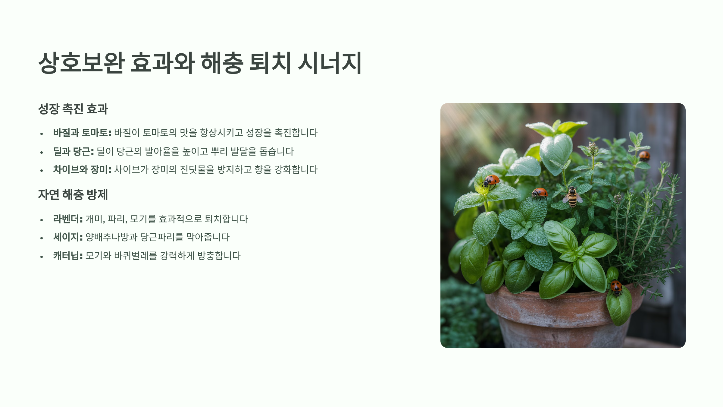 상호보완 효과는 식물 배치의 과학이자 예술이에요. 서로의 장점을 살리고 단점을 보완하는 조합은 건강한 정원과 풍부한 수확을 만드는 핵심이에요.