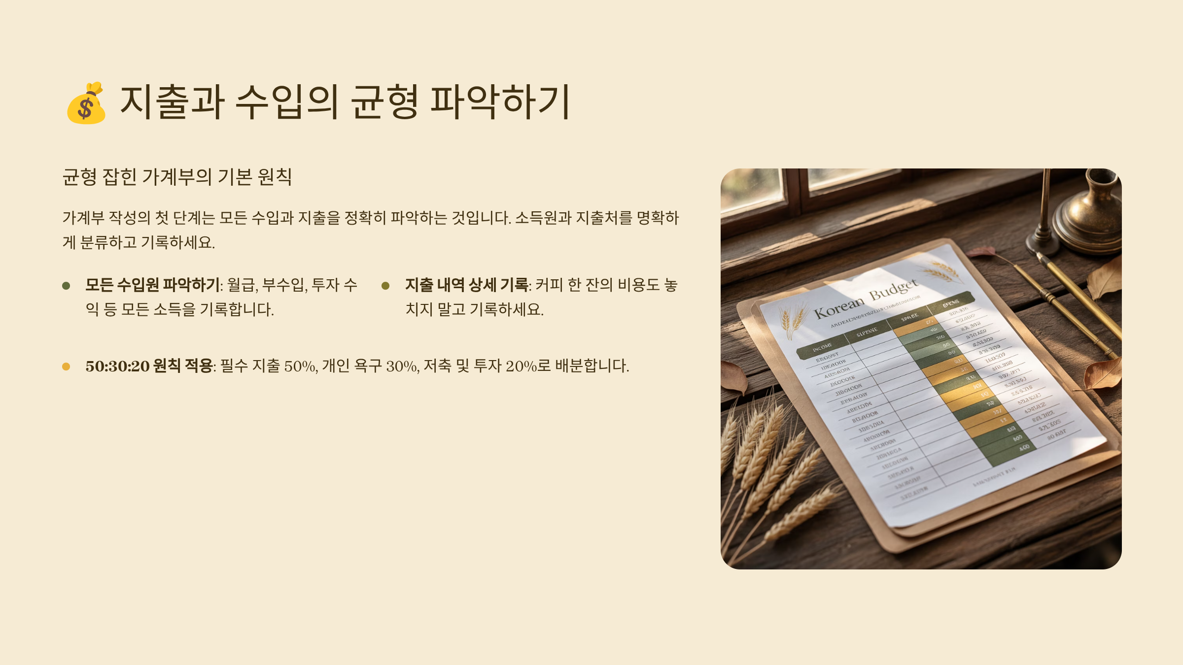 가계부는 숫자를 통해 내 재정의 균형을 보여주는 거울이에요. 💰