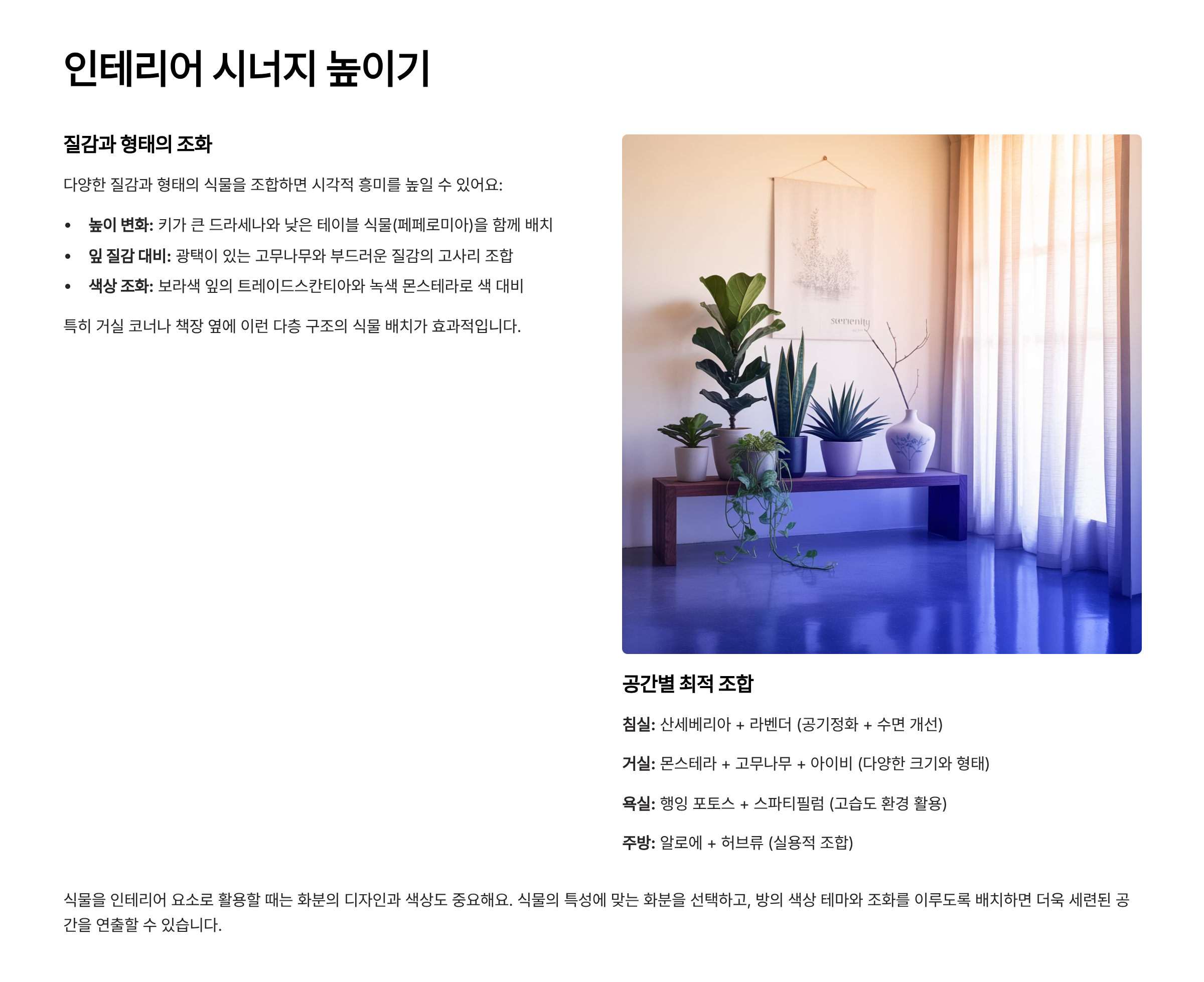 | 조합 식물 | 시너지 포인트 | 추천 공간 |