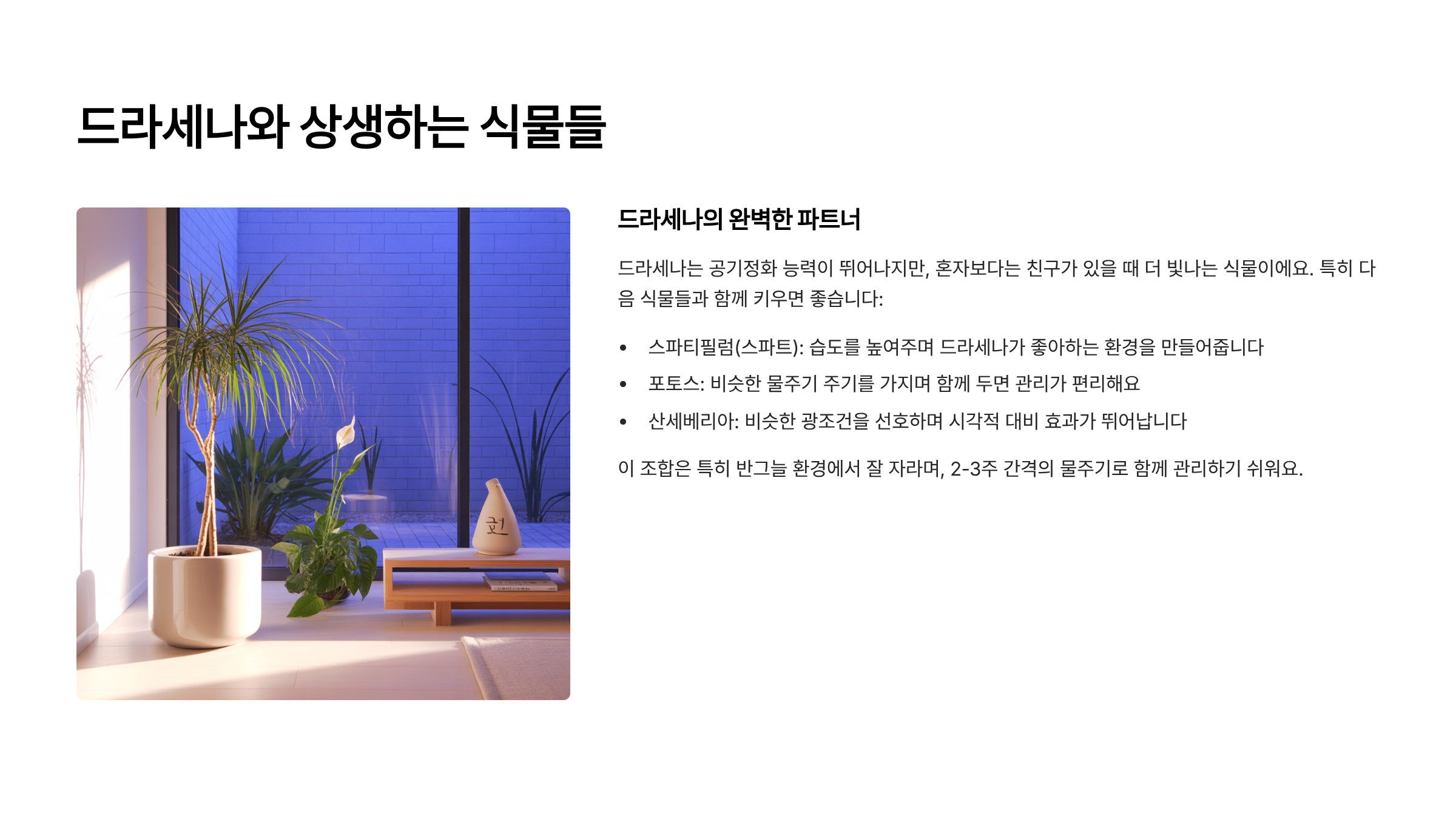 드라세나와 상생하는 식물 🌿🤝