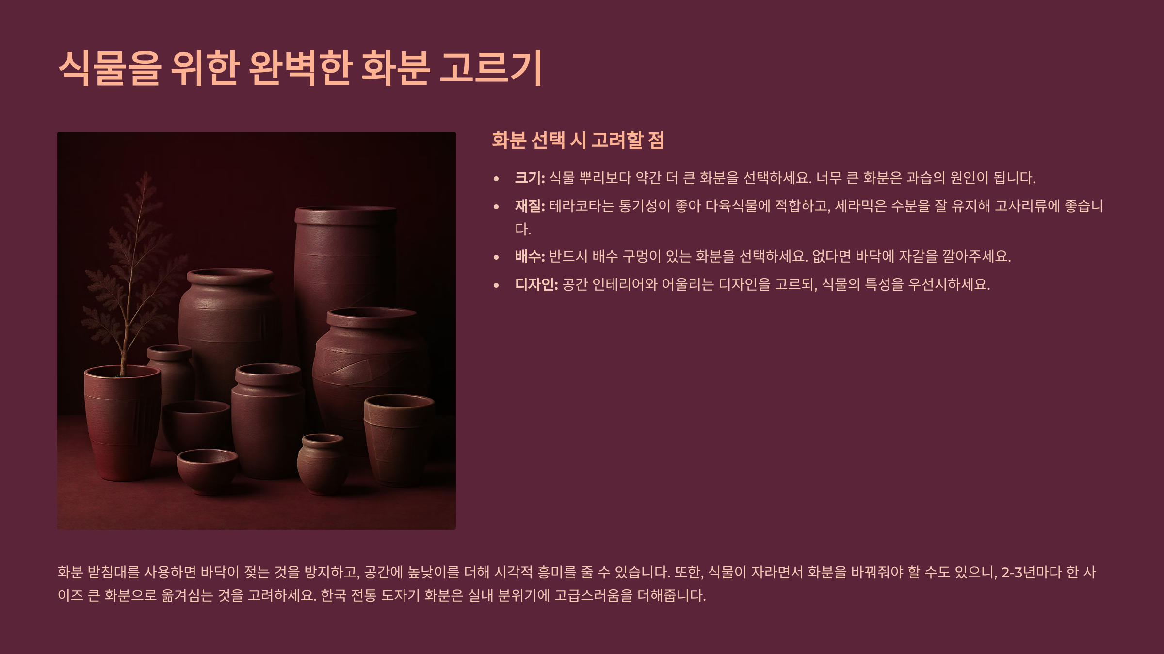 전용 화분 선택 팁 🪴