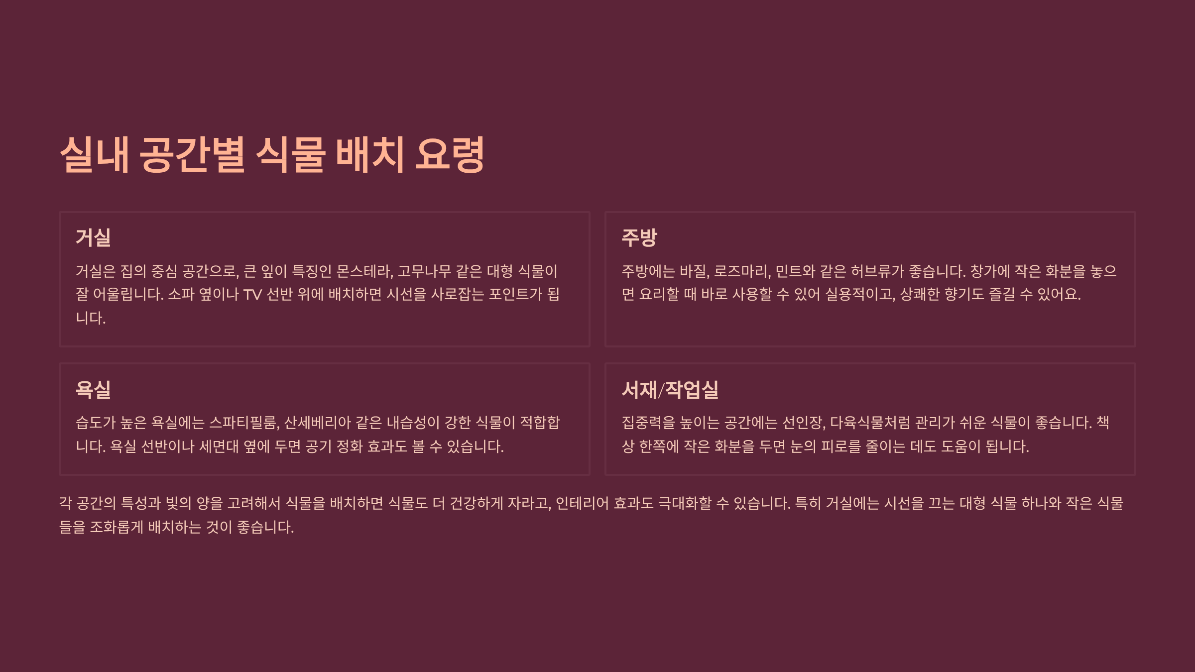 실내 공간별 배치 요령 🌱