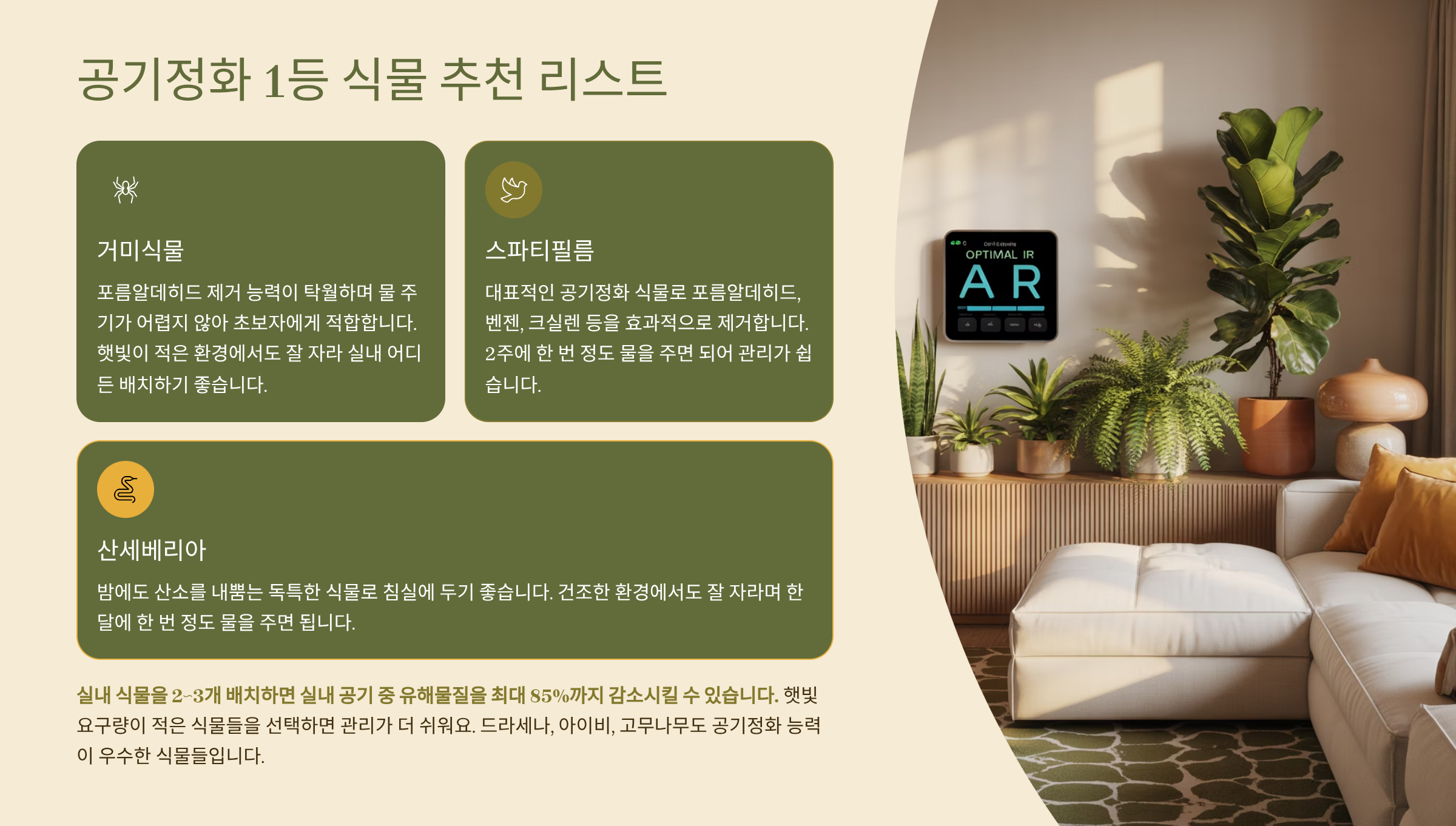 🌿 공기정화 1등 식물 추천 리스트