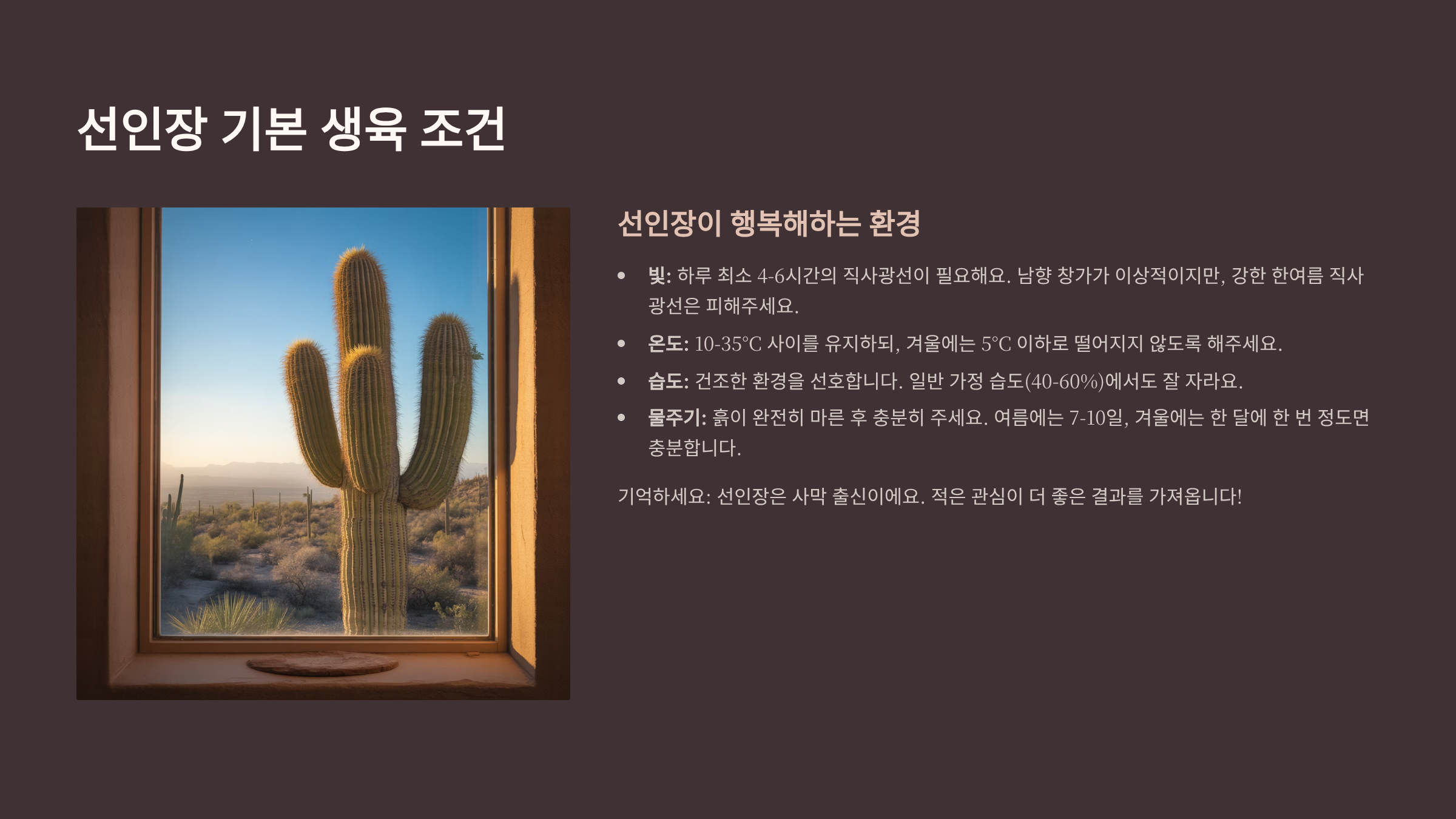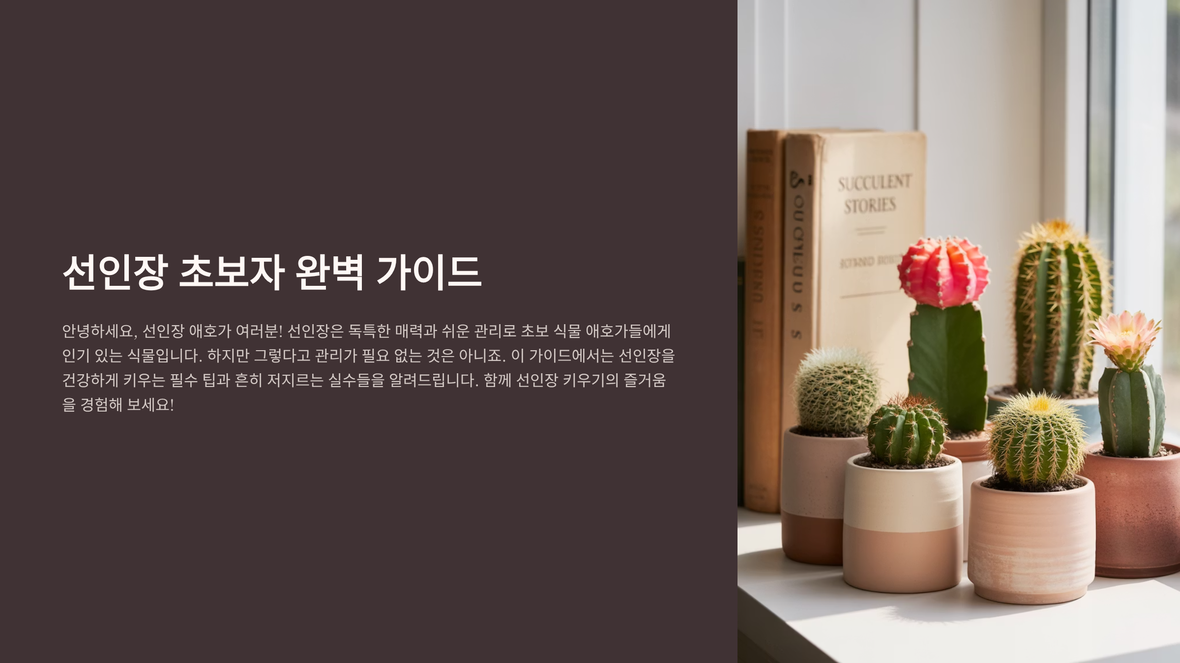 이제부터 자동으로 이어지는 각 섹션에서 선인장을 오래오래 건강하게 키우는 노하우를 제대로 알려드릴게요. 선인장 입문자든, 몇 번 실패했던 분이든 모두에게 꼭 도움이 될 거예요🌵📖