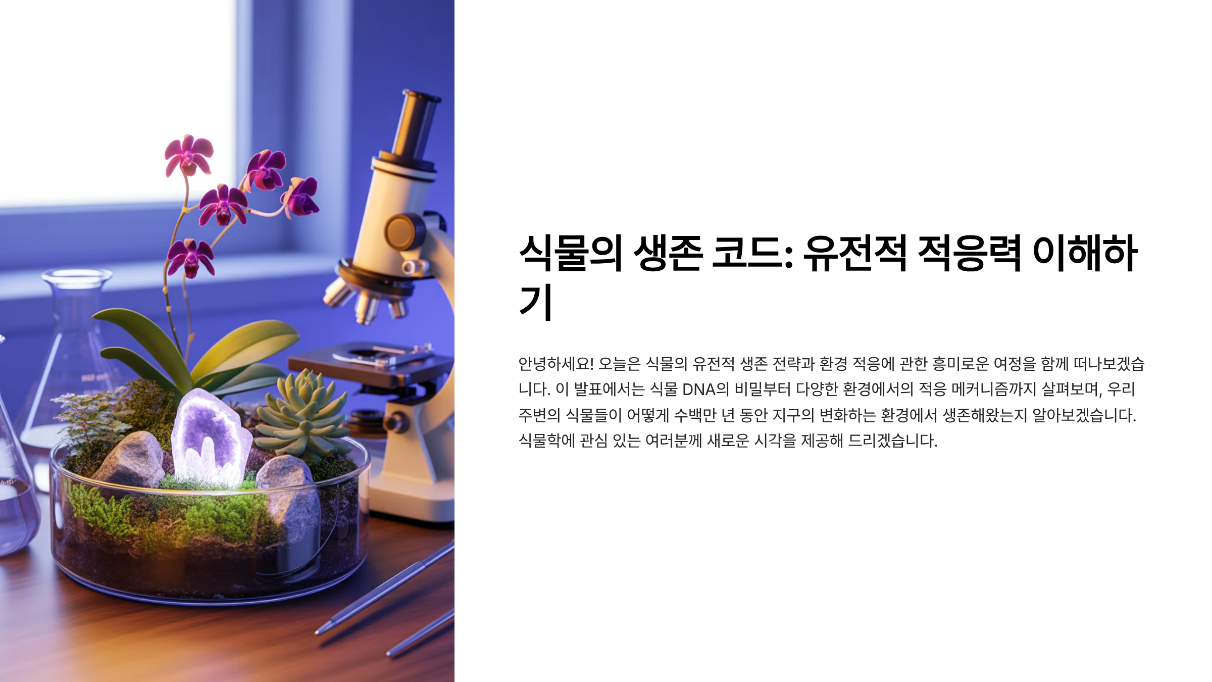 지금부터는 각 섹션을 통해 식물의 유전 구조와 생존 전략, 그리고 환경 적응 능력을 유전자 수준에서 설명해 볼게요. 과학과 자연을 넘나드는 흥미로운 식물 이야기를 함께 시작해요!🍃