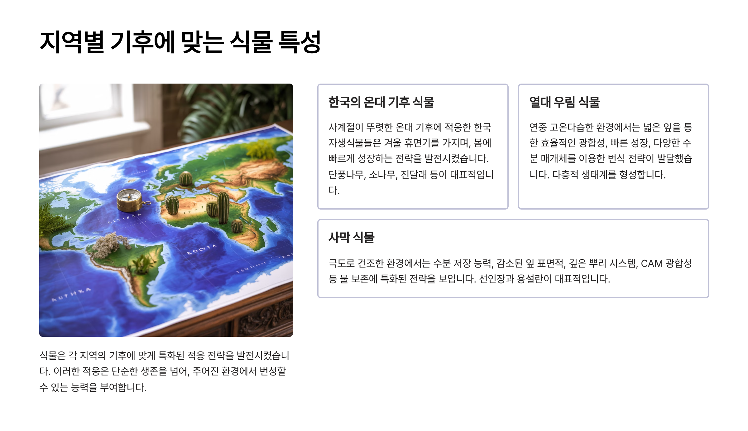🌐 기후대별 식물 적응 특징 🌳
