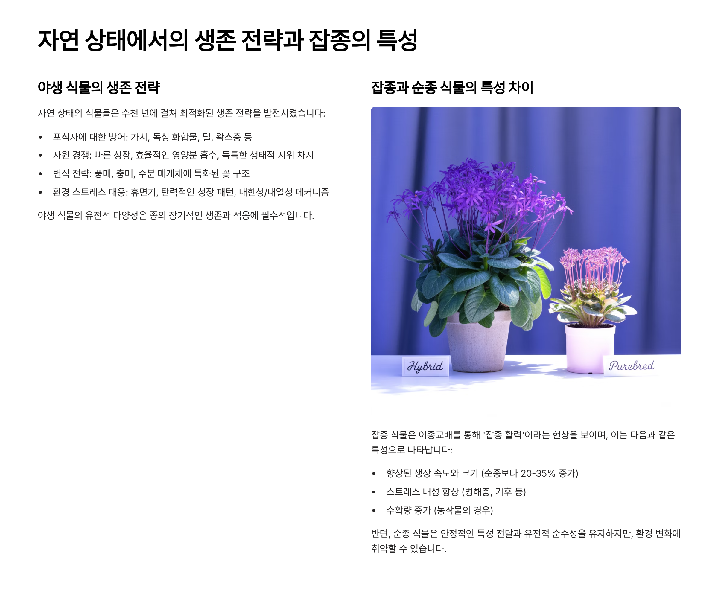 🌱 잡종과 순종 식물의 특성 차이 🧬