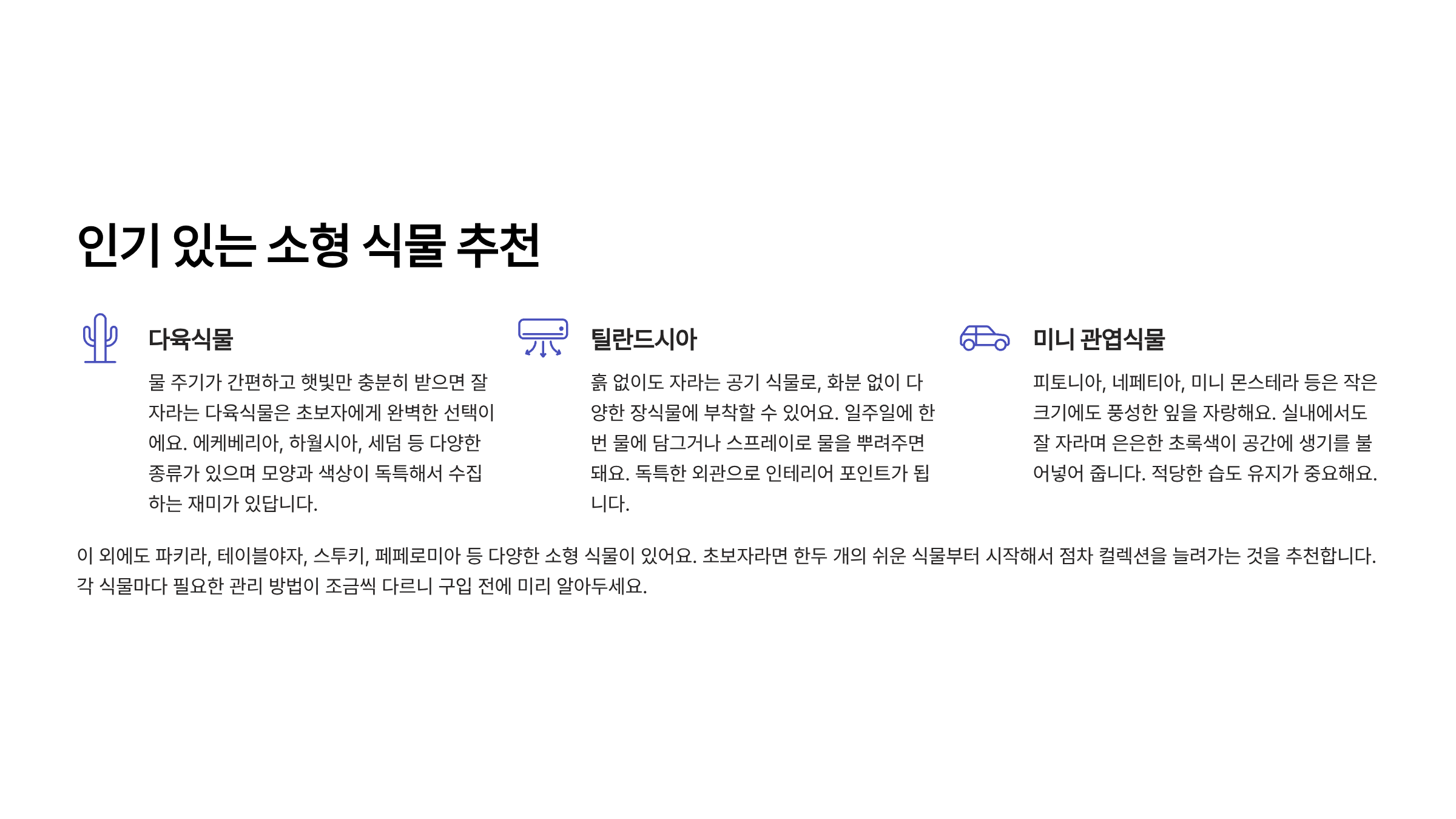 🌼 인기 있는 소형 식물 추천