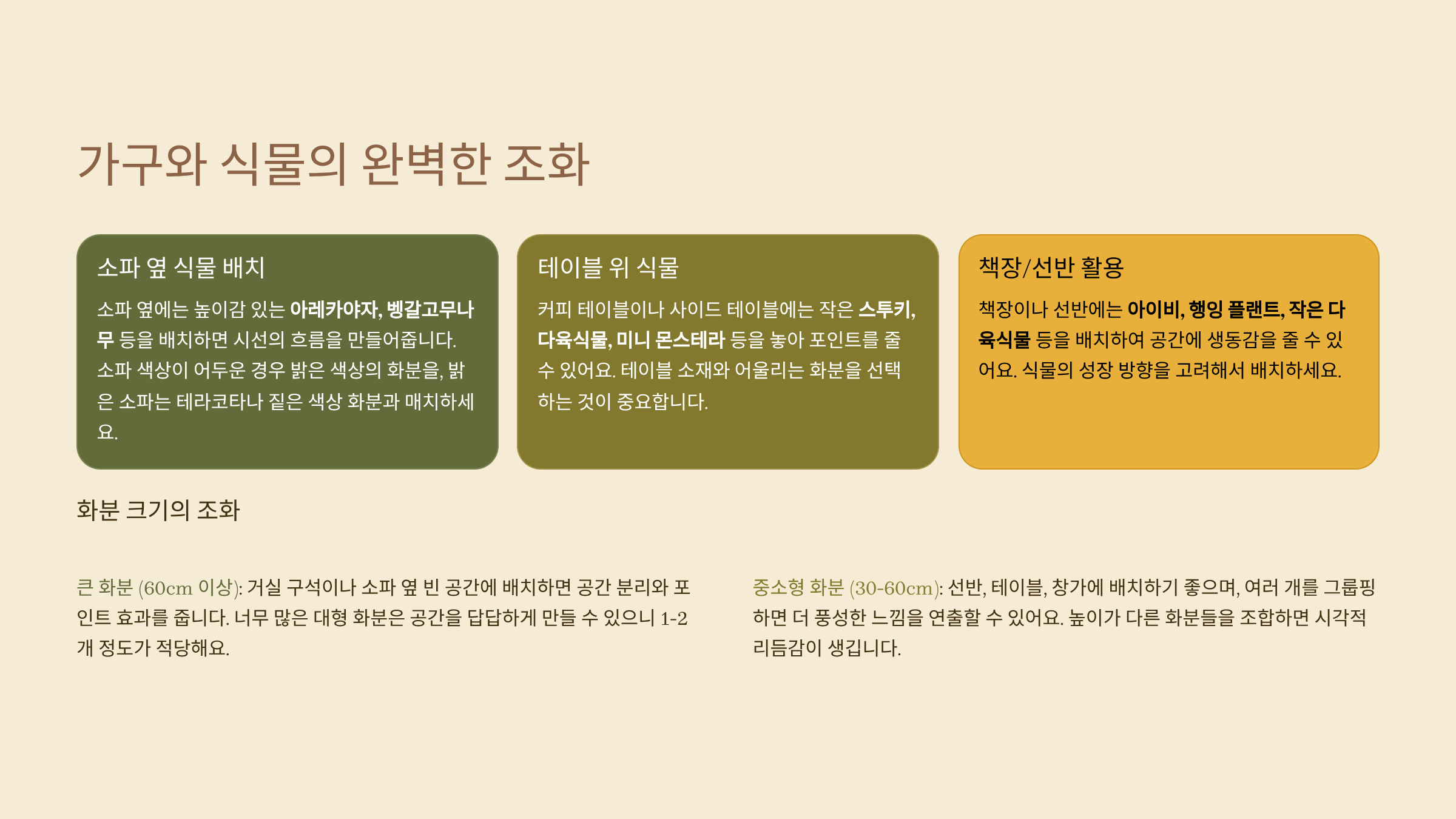 | 가구 스타일 | 추천 식물 | 배치 팁 |