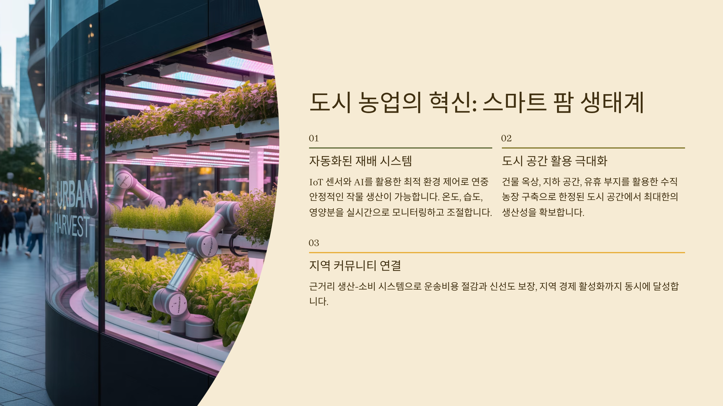 이 프로젝트는 결국, 도시를 먹여 살리는 방법에 대한 제안이었어요. 그리고 그 중심엔 ‘자동화’가 아닌 ‘사람과 연결된 자동화’가 있었어요. 기술을 통해 공동체를 더 가깝게 만든다는 메시지가 참 따뜻했답니다. 🌆🌾