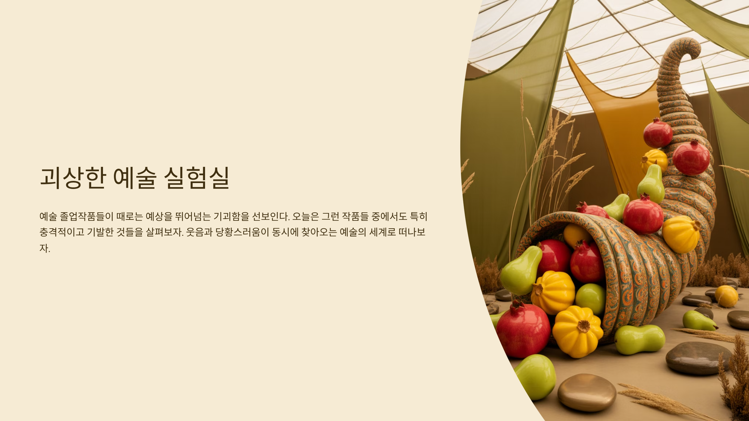 2025년 졸업전시회 현장은 진지함보단 웃음소리로 가득했어요! 예술과 유머가 만난 순간, 말도 안 되는 아이디어들이 현실이 되었죠. 처음엔 “이게 뭐지?” 했다가, 금세 “이걸 만든 사람 대체 누구야🤣” 하고 감탄했답니다.