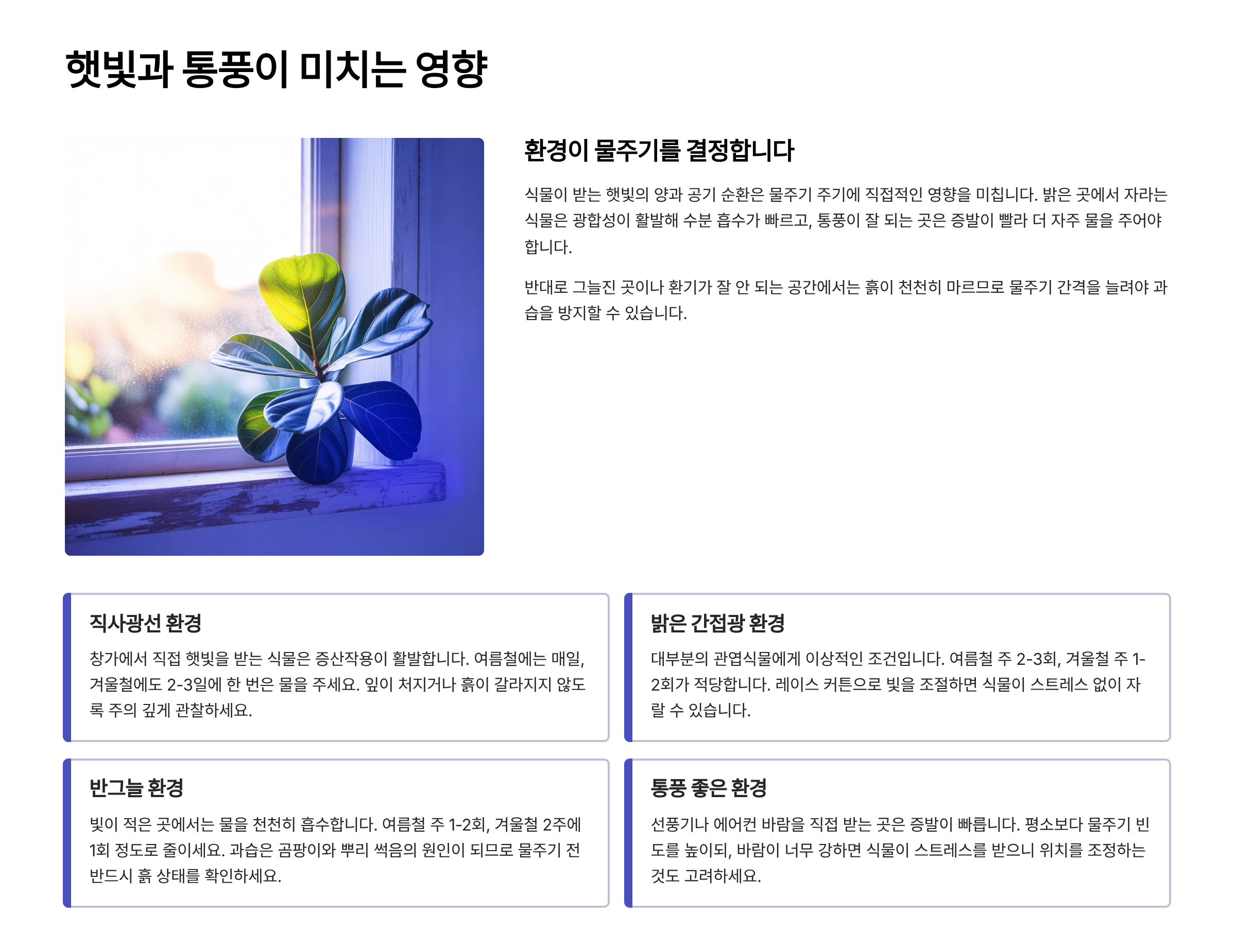 🌬️ 햇빛 & 통풍별 물주기 변화 표 🪟